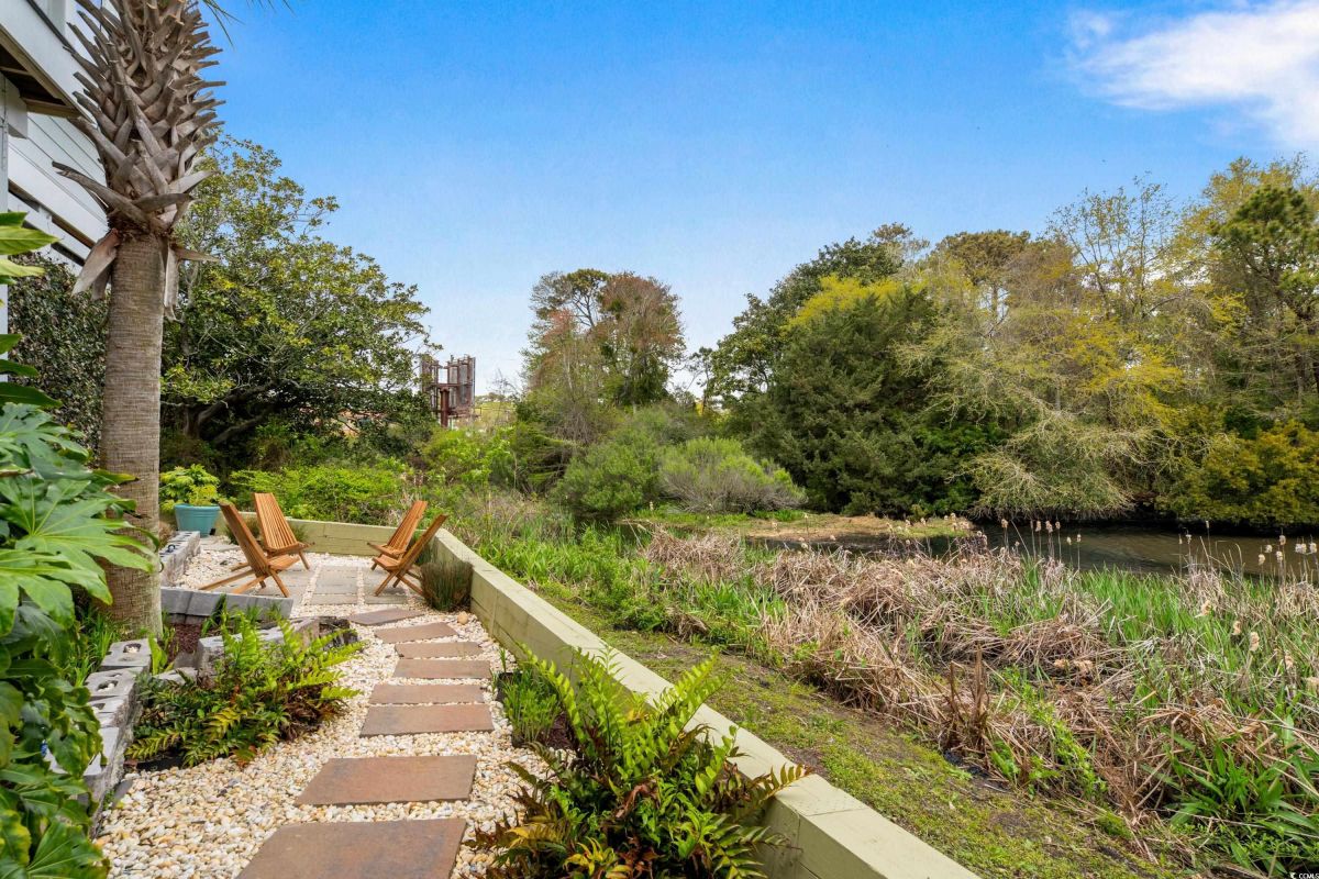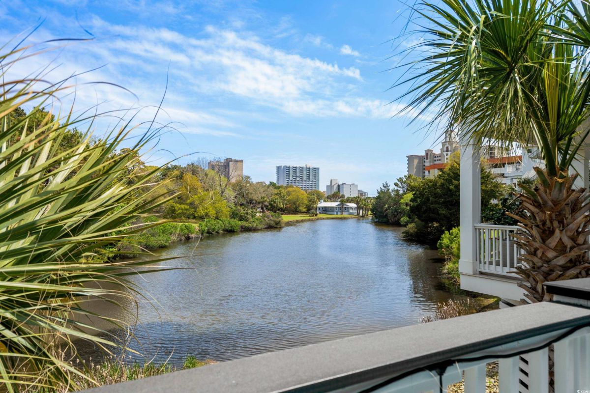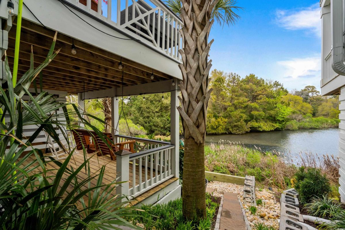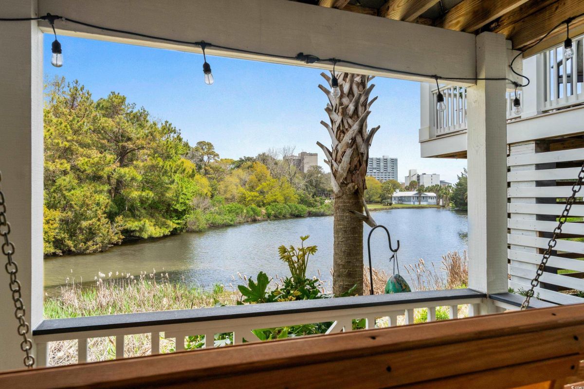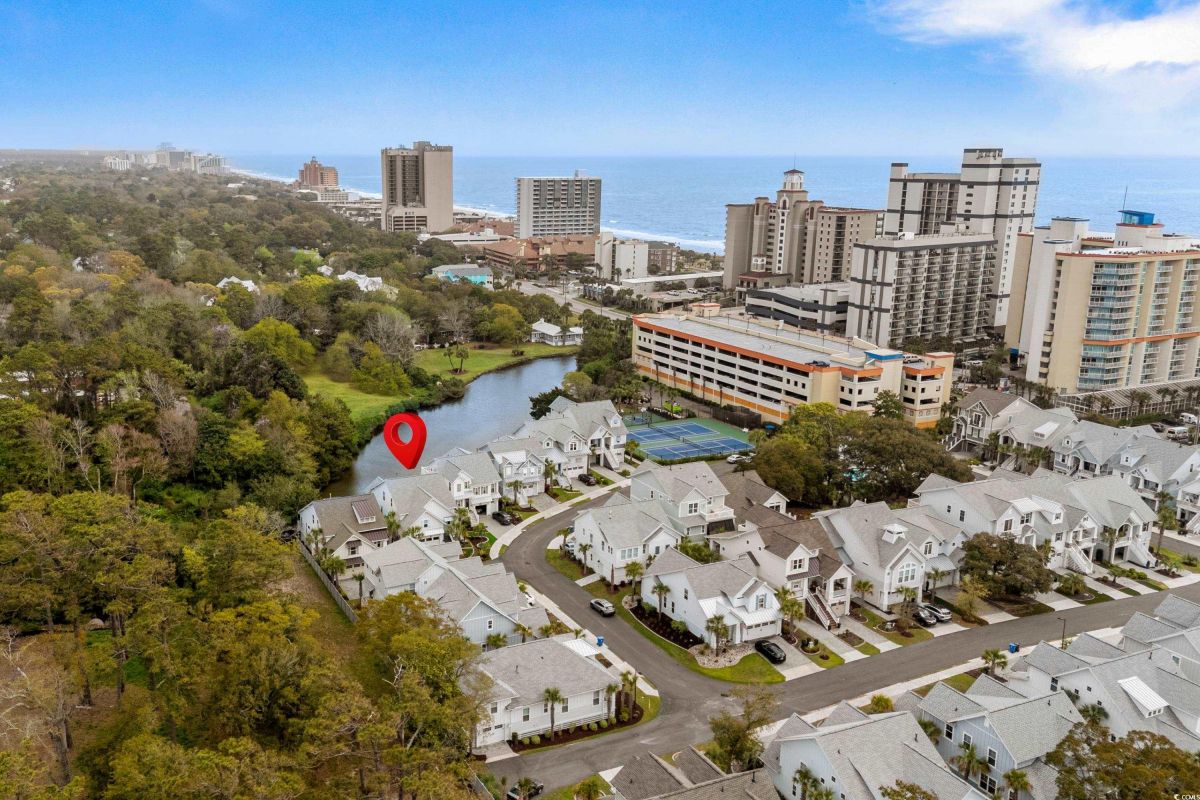 ONLY HOME AVAILABLE!!! Nestled in the exclusive gated community of Ocean Village along the prestigious “Golden Mile” of Myrtle Beach, this stunning 4-bedroom, 3-bath home offers luxury coastal living at its finest. Ocean Village is a collection of 33 cottage homes, at a fabulous location across from the beach. No short term rentals allowed!!! Low HOA!!! A natural gas community, this home boasts an open-concept design and quaint features throughout the home. As you enter through the foyer, the laundry area to the right, and then garage entry to the left makes it nice for access to the kitchen. The layout of the Kitchen is a nice size and has it all; Custom designed backsplash, quartz countertops, custom maple cabinets, work island, stainless steel appliances, a custom pantry and a dining area that has custom built in seating. The living room features a vaulted beam ceiling and cozy linear gas fireplace. The owner's eye to detail shows throughout the interior and exterior of the Home... So many Cool Touches!!! There are Hardwood Floors though out the first floor and all bathrooms. Sliding doors off the living room lead to a spacious rear deck overlooking a serene tidal lake, perfect for relaxing or entertaining. The Natural setting changes daily with a number of different species of WILD LIFE that flock to this Lake... YOU SEE IT ALL!!! The deck brings the outside to the inside with a full coverage awning for shade. Plenty of Space for grilling and for your herb garden. The main-floor master suite is a private retreat with a tray ceiling, wall of glass windows, sitting area overlooking the lake, a spa-like bathroom with dual vanities, a makeup counter, a large walk-in shower, and a custom maple closet system. Also, located on the main level is a guest bedroom, a full bathroom, and a convenient laundry room. Midway up to the second floor to the left over the garage is a third spacious bedroom. On the second floor, you will find a fourth guest suite with full bath and a huge custom designed closet. There is ample space for family and friends. The home also includes a temperature controlled two-car attached garage, and a charming backyard sitting area along with a covered porch with swing, where you can enjoy the coastal breeze and scenic lake views. The lot features mature landscaping and lighting. The back yard has entry gates on both sides plus lots of storage under home. Ocean Village amenities include "Live Oak Park," which features a beautiful outdoor pool, a grill area, hammocks, lounges, showers, and restrooms, plus access to tennis and basketball courts - all with low HOA fees. The iconic Oak Tree embraces the natural setting of the pool and grill area. Centrally located near the best shopping, dining, and attractions of Myrtle Beach, this home is a rare find. This is your chance to live in this remarkable community! A golf cart ride to so MANY wonderful eateries!!!