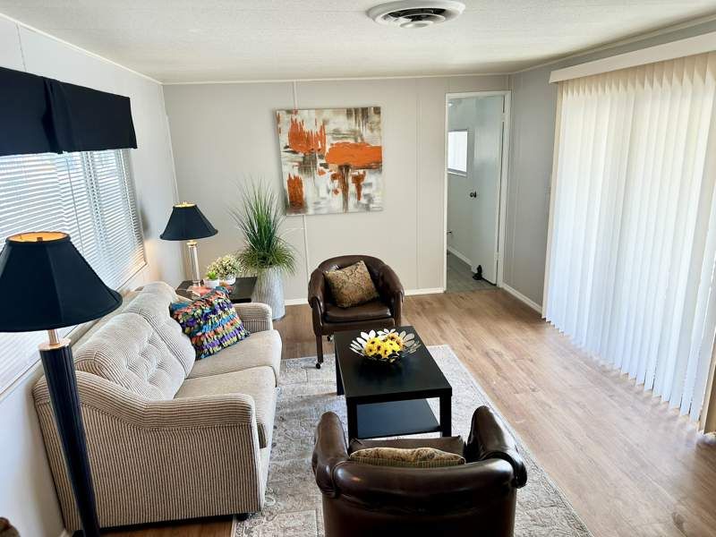 Don’t miss this beautifully remodeled 2 bedroom, 1.5 bathroom 1970 home located in the desirable Citrus Gardens 55+ Community in Mesa, AZ!! Priced at just $19,950 this updated home offers stylish upgrades, a comfortable layout, and a location that’s close to shopping, hiking, lakes, and the airport. Enjoy the ease of a remodeled interior—fresh finishes, modern touches, and move-in ready charm throughout. Whether you're relaxing indoors or enjoying the sunshine on your patio, this home delivers both value and lifestyle. Seller financing available! Just $6,000 down with 7% interest over 5 years—a fantastic opportunity for buyers looking for flexible terms in a great community. Act fast—homes at this price with seller carry don’t last long! Call your Resort Home Specialist today to schedule a showing and make it yours.