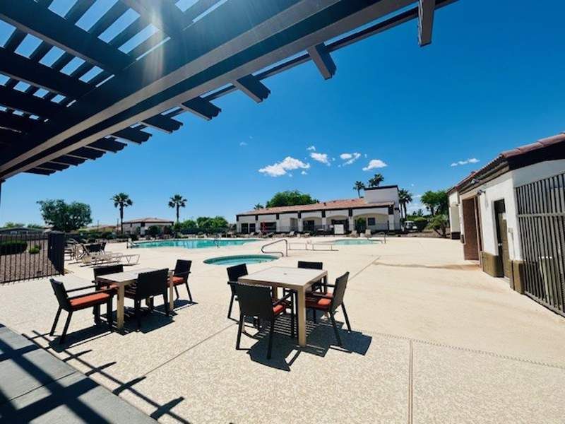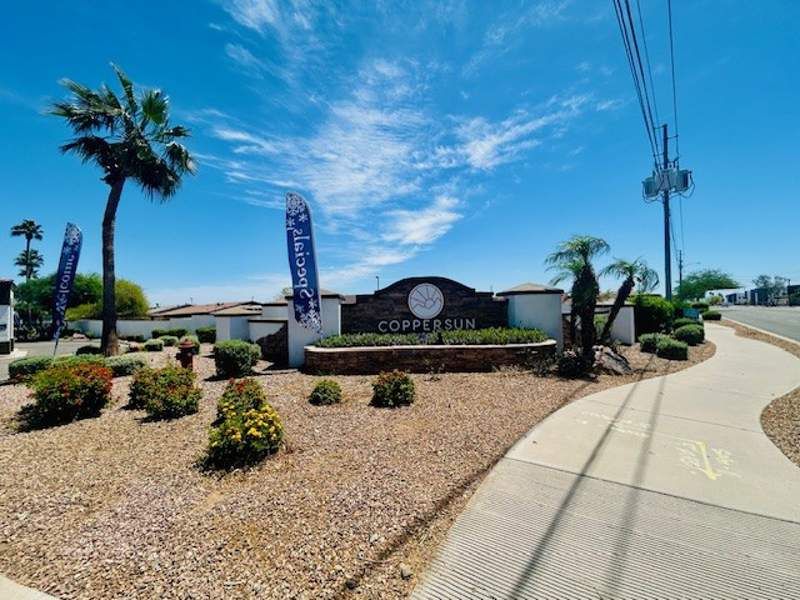 This 1680 square foot manufactured home in the community of Coppersun in El Mirage, AZ offers a spacious and modern living space, open floor plan. 10 ft ceiling, 8 ft doors and crown molding throughout. The home features 3 bedrooms and 2 bathrooms, including a master suite with an en suite bathroom and walk-in closet. The open floor plan includes a living room, dining room, kitchen with stainless steel appliances, breakfast nook, and a laundry room with washer/dryer hookups. The exterior of the home boasts a carport, deck, and open porch, all surrounded by Cemplank/Smart Panel siding and asphalt shingles. Coppersun is a welcoming community in El Mirage, AZ offering residents a variety of amenities and activities to enjoy. The community features a clubhouse, pool, and fitness center, as well as walking paths and green spaces for outdoor recreation. Residents can also participate in community events and social gatherings, creating a tight-knit and friendly neighborhood atmosphere. Located near shopping, dining, and entertainment options, Coppersun provides convenient access to everything El Mirage has to offer.