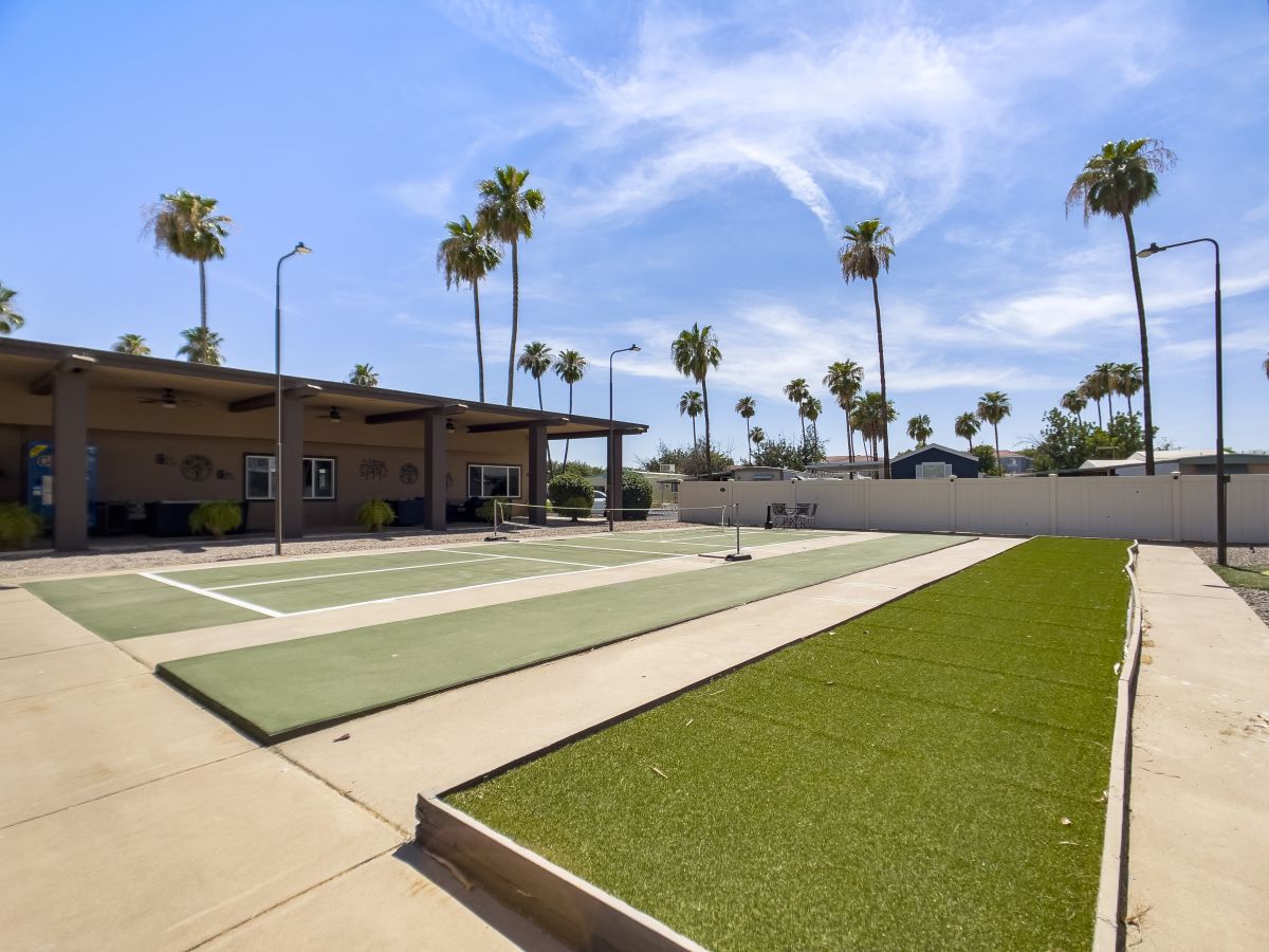 This charming 1060 square foot manufactured home in the Desertscape community of Phoenix, AZ offers cozy comfort and convenience. Built in 2006 by Palm Harbor, this one-bedroom, one-bathroom home is the perfect size for a single person or couple. The interior features a spacious living room, dining room, and well-equipped kitchen with an oven, fridge, and hot water heater. The master bedroom offers a peaceful retreat from the hustle and bustle of daily life. Outside, there is a carport for convenient parking. Desertscape is a vibrant community in Phoenix, AZ that offers residents a variety of amenities and activities. Residents can enjoy a clubhouse, fitness center, swimming pool, and social events to foster a sense of community. The well-maintained grounds and proximity to shopping, dining, and entertainment make Desertscape a desirable place to call home. With easy access to major highways, residents can easily explore all that Phoenix has to offer.