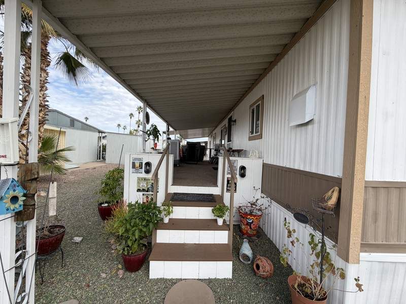 This beautifully refreshed 840 sq. ft. manufactured home is located in the desirable Dorado Canyon community in Mesa, Arizona and offers a rare combination of thoughtful upgrades, tasteful finishes, and true move-in readiness. This home has been carefully maintained and recently improved to meet the expectations of even the most discerning buyer. Double pane windows for better efficiency and insulation. The interior features a bright, spacious living room with neutral tones and updated flooring that flows seamlessly into the dining area, creating a comfortable and functional layout. The upgraded kitchen is both stylish and practical, equipped with new appliances featuring Wi-Fi and Bluetooth capabilities, including a modern stove with a built-in air fryer, making everyday cooking both convenient and efficient. This home offers two well-proportioned bedrooms and one updated bathroom, providing comfortable living without wasted space. Recent improvements include brand-new carpet, fresh interior paint, new electrical receptacles throughout, a new hot water heater, and a recently serviced central A/C system that works exceptionally well. Additional highlights include washer and dryer, a covered carport, private storage shed, and inviting outdoor living areas ideal for relaxing or entertaining. The home’s clean presentation and thoughtful updates make it a standout option within the community. Dorado Canyon is a vibrant, well-maintained community offering residents access to a clubhouse, swimming pool, fitness center, and beautifully landscaped common areas. Conveniently located near shopping, dining, and entertainment, this community provides both comfort and lifestyle. This is a turn-key opportunity for a buyer who values quality, condition, and modern conveniences in a well-established 55+ community.