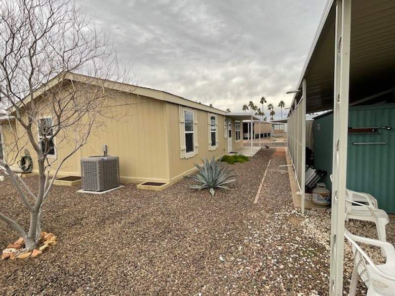 Beautiful 2018 well kept home in the much sought after Dorado Canyon 55+ community. Two bed Two bath home with a large kitchen island, great for preparing food or gathering around with family and friends. This 1210 sq ft homes is ready to move into and start yout Azorina living today. All appliances are included. Nice sized backyard will Desert Willow trees. Make an appointment today to see this wonderful home today.