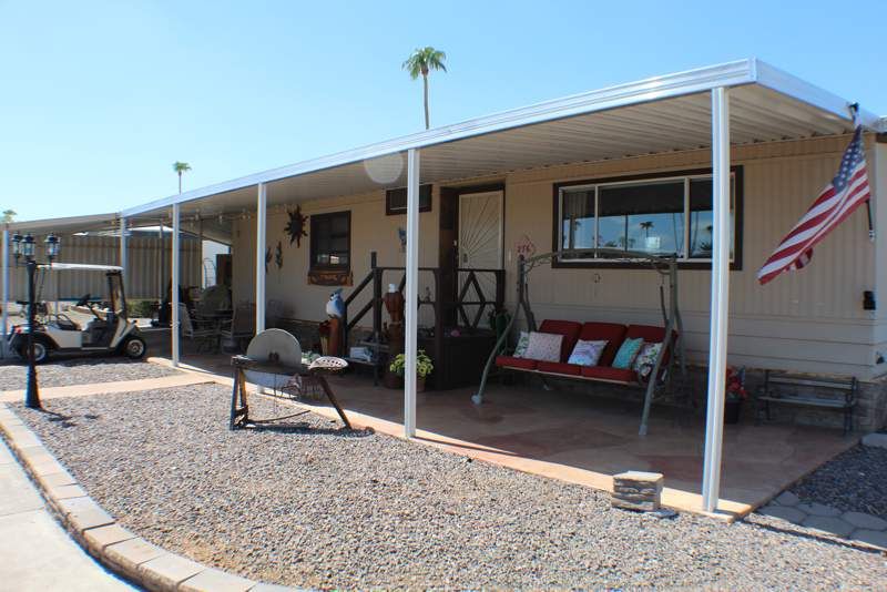 WOW So much love was put into customizing this home. You can definitely tell that this couple was remodeling this home with their heart and soul. You can feel the love the second you walk in the door. I have never seen a remodeled home with this quality of material or craftsmanship. I truly don't even know where to start. This beautiful home is an east facing corner lot with a double car port and golfcart parking, a large work shop and an additional shed out back. The walls are 8" of insulated sheetrock. All of the subflooring was replaced with 1/2" plywood. The AC which comes with a smart thermostat you can access with your cell phone when you are on vacation, and the hot water heater are newer and top of the line. All of the plumbing has been replaced with PEX. The roof was re-coated a year ago. New energy efficient appliances. Full sized stackable washer and dryer so you wont have to bend and stoop. All of the essential upgrades that will make your investment save you money and last forever. The ore this home has is just amazing lets start with this front patio. Just picture yourself on the porch swing. With your cup of tea, on this beautiful custom flagstone overlay patio. Watching the sunrise over the superstition mountains. Or enjoying your friends cuddled up around the firepit patio table in the evening. Walk in your home feeling safe and secure in a beautiful gated community, you have a metal security door and a keypad entry standard sized security door with integrated blinds inside of a large double pane window. Such a comfy cozy solid artistic feel. Large open floorplan with an extra large island with custom lighting underneath. Lighting up the most beautiful custom autographed metal art piece framed by a wall of stone, topped with gorgeous black granite countertops. Solid wood cabinets with custom under cabinet lighting. Lots of large double pain windows to let the light in on those beautiful AZ "winter" days. A built in electric fireplace to set the cozy winter mood. This homes flooring selection is unsurpassed. Again 1/2" subflooring, tiled kitchen, 3'/4" solid hickory in the master room, and Livingroom. Master shower is extra large step in with made to order Italian marble in a unique artistic diamond pattern, and a glass block shower wall. Guest bathroom is black granite with eye catching gold accent tiles. Master room is very large, you could almost fit 2 king size beds in here. Very large mirrored closet. Reading lights wired in to the ceiling on both sides of the beds with an individual switch just in your reach no matter what side of the bed you are on. Guest bedroom has a complete murphy bedroom set so you can use it as a craft room, bonus room or office and still have a place for your guests for the holidays. This room is also equipped with a large walk in closet and lots of other storage. There is so much more but I'm running out of room to type. You have got to come see this home for your self. Some tools and most of the furnishings throughout are negotiable with reasonable offer. There’s a reason the Phoenix area is one of the top-rated places in the US to retire. You’ll quickly find that this desert oasis offers more than just natural splendor – there is an endless array of activities around town and at Dorado Canyon. Discover our vibrant, affordable, low-maintenance community for ages 55 and better! Our resort, is gated and considered the friendliest neighborhood in all of Mesa, Arizona! If you love to live an active lifestyle, engage in lively social connections, and take advantage of living in a thriving metropolis surrounded by a picturesque landscape - Dorado Canyon is for you!