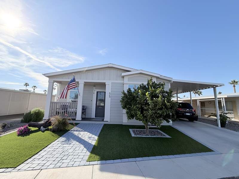 Wonderful 2 bed 2 bath in the beautiful 55+ community, Dorado Canyon! Enjoy our spa, heated pool, dog park, shuffleboard, pickleball, billiards, firepit, daily activities and more in this wonderful, spacious home. From the front porch to the stunning natural wood cabinets this home has it all. Every room in this home is exceptionally spacious and inviting. CALLING ALL CHEFS, the kitchen has a tons of solid surface countertops and upgraded stainless appliances (including a French door refrigerator). We didn't forget the bathrooms, the bathrooms feature the same solid surface countertops and raised vanities and commodes PLUS a floor to ceiling tile shower in the master bath. Call to schedule a tour today!