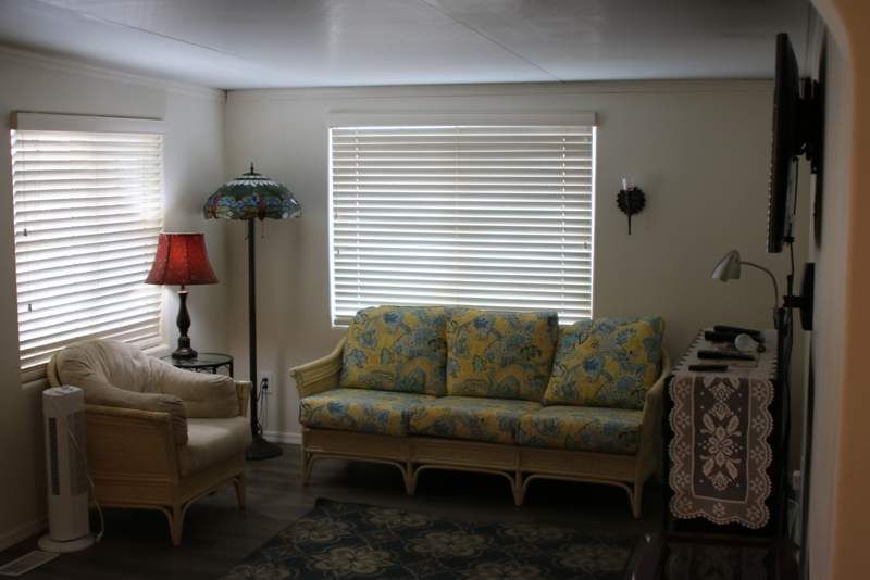 The 396 square feet Park Model home at Mosaic Sun in Apache Junction, AZ is a cozy and inviting space featuring 1 bedroom and 1 bathroom. Built in 1996 by Skyline, this charming home boasts a spacious living room and dining room, perfect for entertaining guests or relaxing with loved ones. The home also includes a carport, providing convenient covered parking for residents. Mosaic Sun is a vibrant and close-knit community located in the heart of Apache Junction, offering residents a variety of amenities and activities to enjoy. From community events to recreational facilities, there is always something to do at Mosaic Sun. Residents can take advantage of the beautiful Arizona weather by spending time outdoors in the community park or taking a dip in the swimming pool. With a friendly and welcoming atmosphere, Mosaic Sun is the perfect place to call home for those looking for a peaceful and active community in Apache Junction.