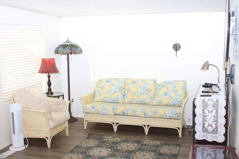 This charming 704 sq. ft. manufactured home, built in 1987 by Cavco, offers a warm and inviting 1-bedroom, 1-bath layout—perfect for a cozy retreat or low-maintenance living. Its generous size makes it unique within the community, providing more comfortable living space than most comparable homes. Inside, you’ll enjoy a spacious living room, a fully equipped kitchen, and a versatile Arizona room ideal for extra lounging, hobbies, or guests. The exterior features durable vinyl siding, a convenient carport, and an asphalt driveway for easy access. The fenced yard adds privacy and outdoor usability, and best of all—this home has no back-door neighbor, offering peaceful, unobstructed space behind the property. A rare find with exceptional value and comfort! Located in the community of Mosaic Sun in Apache Junction, AZ, residents can enjoy a variety of amenities and activities. The community offers a clubhouse for social gatherings, a swimming pool for relaxing on warm days, and fitness facilities for staying active. With stunning views of the Superstition Mountains and close proximity to outdoor recreation areas, Mosaic Sun is the perfect place to call home for those seeking a peaceful and active lifestyle.
