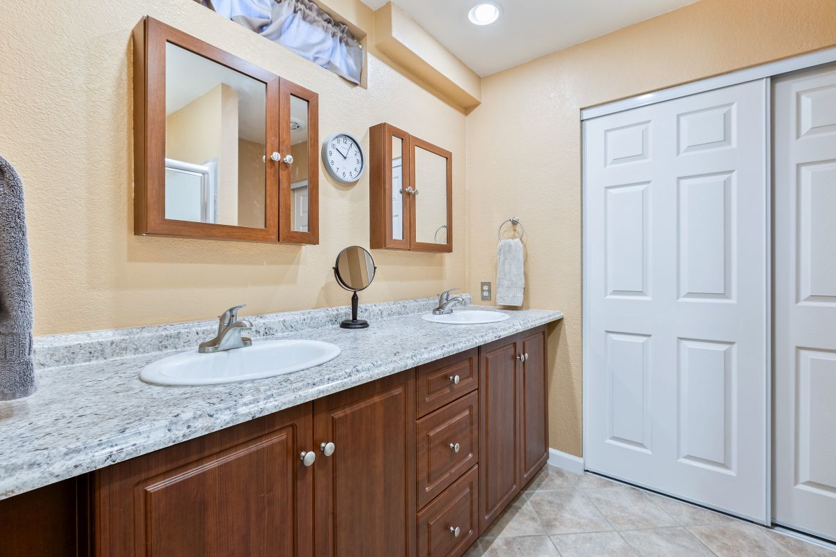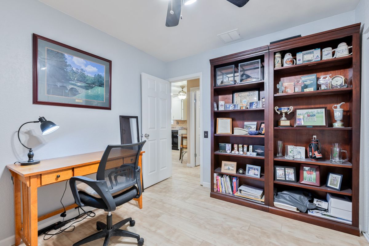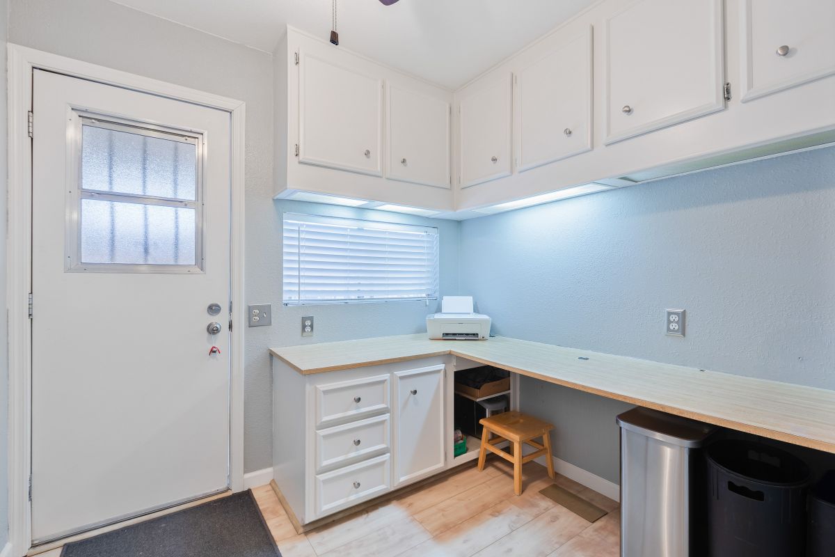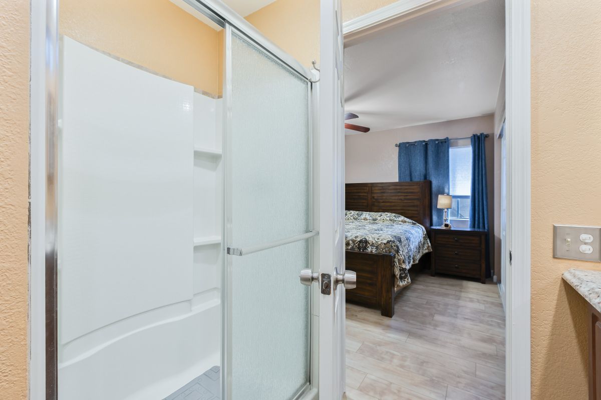 Beautifully Remodeled! This updated 1,344 sq ft home offers modern comfort with a newer roof (2022/2023), newer A/C, fresh texture and paint, and newer vinyl flooring. The kitchen includes white cabinetry, mosaic backsplash, built-in oven and microwave, cooktop with range hood, dishwasher, French door refrigerator, stainless sink with pull-out faucet, and a new soft water and R/O system. The laundry room adds a washer/dryer, built-in desk, and extra cabinetry. The primary suite features a dual-sink vanity, double medicine cabinets, walk-in closet, and step-in shower, while the guest bath also offers a modern vanity and step-in shower. New lighting, ceiling fans, and sunshades enhance comfort throughout, plus a large storage shed, irrigations system and golf cart pad complete the home. Furniture is negotiable. Call to schedule your personal tour today! (480) 325-1161
