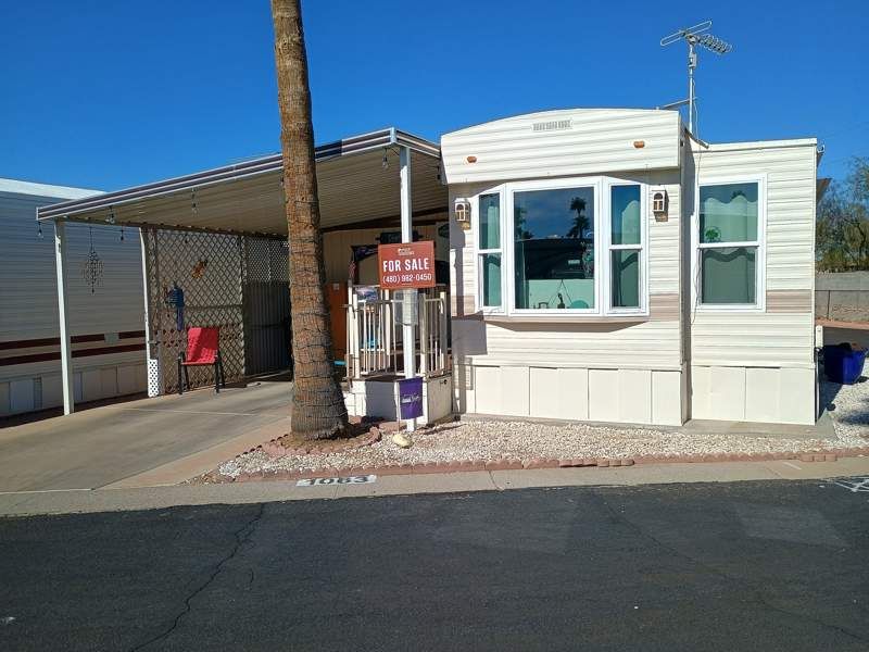 This charming Park Model home in Rock Shadows features one bedroom and one bathroom, making it the perfect cozy retreat for a single person or couple. Built in 1982 by CASA, this home offers a comfortable living room and dining room area, along with a convenient en suite bathroom and kitchen equipped with modern appliances such as an oven, fridge, microwave, washer, and dryer. With central A/C, stainless steel appliances, and a carport for covered parking, this home offers both comfort and convenience. Located in the vibrant community of Rock Shadows in Apache Junction, AZ, residents can enjoy a range of amenities and activities such as swimming pools, fitness centers, and social clubs. The community also offers beautifully landscaped grounds and a friendly atmosphere for residents to enjoy. With a corner lot providing extra privacy and a shed for additional storage, this home in Rock Shadows offers a relaxing and enjoyable lifestyle in a picturesque desert setting.