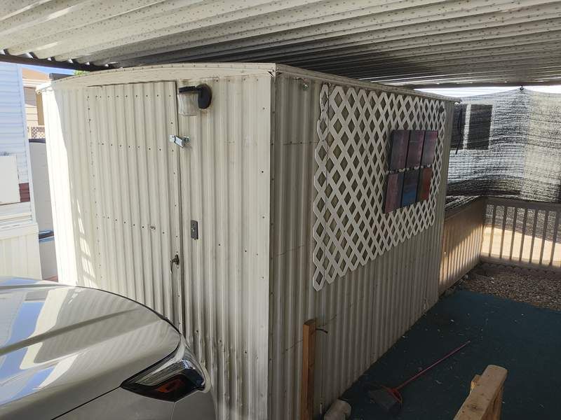 This 320 square foot Park Model home at Rock Shadows in Apache Junction, AZ is a cozy space with 1 bedroom and 1 bathroom. Built in 1981 by Cavco, this charming home boasts a spacious master bedroom, a functional kitchen with all appliances included, a comfortable living room, and a dining room perfect for entertaining guests. The exterior features of the home include a convenient carport for parking, a shed for extra storage, a deck and patio for outdoor relaxation, and durable aluminum siding for low maintenance. Inside, the home is equipped with an oven, fridge, microwave, and hot water heater for all your daily needs. Make this your forever home. Rock Shadows community in Apache Junction, AZ offers a variety of amenities and activities for residents to enjoy. From a clubhouse with social events and fitness classes to a swimming pool and tennis courts, there is something for everyone in this vibrant community. The park-like setting of Rock Shadows features scenic views of the Superstition Mountains and plenty of opportunities for outdoor recreation. With friendly neighbors and a welcoming atmosphere, Rock Shadows is the perfect place to call home for those looking for a peaceful and active community in the heart of Arizona.