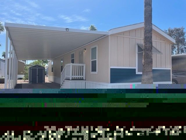 This 420 square feet Park Model home at Rock Shadows in Apache Junction, AZ, built in 2025 by Cavco, offers a cozy and modern living space. The open concept layout includes a living room, dining room, and a master bedroom with a full bathroom. The kitchen is equipped with essential appliances such as an oven, fridge, and microwave, making meal preparation convenient and efficient. Additional features include A/C splits in living room and bedroom, and washer/dryer hookups inside home for comfort and convenience year-round. Outside, the home boasts a carport for parking and a shed for extra storage space. Rock Shadows in Apache Junction, AZ, is a vibrant community that offers a variety of amenities and activities for residents to enjoy. From organized social events to recreational facilities like a pool and clubhouse, there are plenty of opportunities for residents to connect and stay active. The community is conveniently located near shopping, dining, and outdoor recreation opportunities, providing a convenient and fulfilling lifestyle for residents. With its welcoming atmosphere and diverse range of amenities, Rock Shadows is a desirable place to call home.