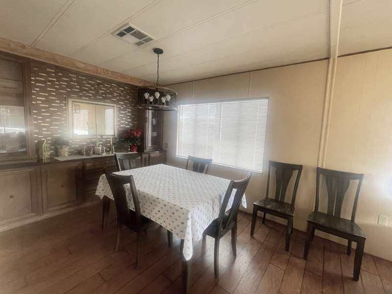 Beautiful, Upgrades Thru-Out, Huge Party Deck w/Composite, 2 Sheds w/Electricity - 1 has a Garage Door for easy Loading, 2Br/2Ba DoubleWide MH home comes partially furnished, Large Galley Kitchen, Refrigerator (2025), Smooth Top Stove, Full Size W/D (2022), Bathrooms - Step-In Shower & Tub/Shower Combo, 3 Coat Closets, Built-In Bookcase, Updated Light Fixtures, Ceiling Fans, Wood Look & Tile Look Laminate Flooring, Central A/C & Heat (New Compressor 2023), W/D (2023), Roll Down Sunshades, Solar Tinted Windows, New Blinds (2025), Recoated Roof (2023), Water Heater is Electric, Priced to Sell! Call today for a private viewing. Located in the heart of Mesa, Arizona - you'll find Saguaro Sun a popular 55+ active resort community that our residents love to call home. Amenities include: Fitness Room, Clubhouse, Swimming Pool (heated) and Spa, Putting Green, Library, Shuffleboard, Pickle Ball, Billiards, and much much more. We look forward to you visiting our community and taking a tour. See you soon!