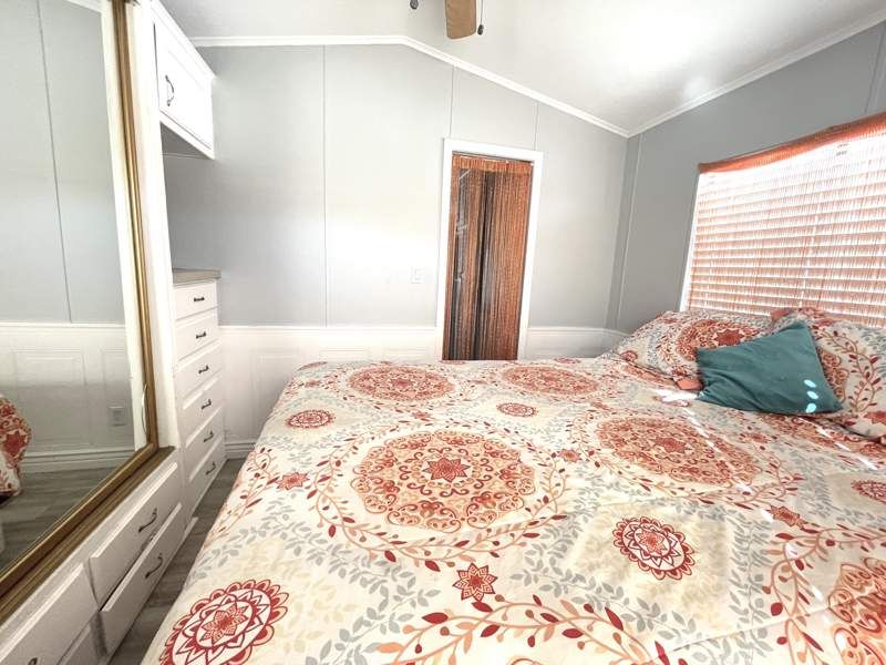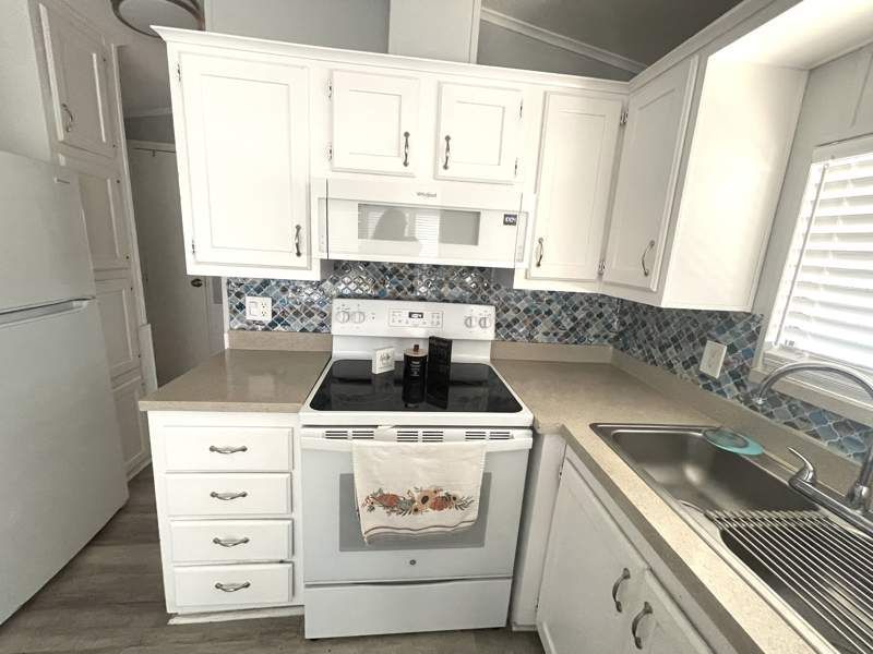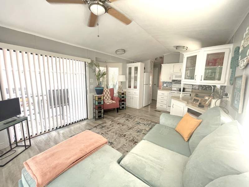 Remodeled Home, Party Deck w/Lights & Privacy Curtains, Firepits (2), 1 Bed/1 Bath L-Shaped Kitchen, Smooth Top Stove w/Backsplash, Built-In Microwave, Refrigerator, Large Picture Front Windows, Pantry (2), China Hutch w/Decorative Glass, White Cabinets, Dining Room Bay Area, Queen Bed (Neptune Bed), Tub/Shower Combo, Wainscott Paneling thru-out, 4" Faux Blinds, Wood Laminate Flooring thru-out, Updated Fixtures, Ceiling Fans, Surround Sound, Panaramic Wifi - Wired, Cox, Int Refinished, Vaulted, Furnished, Central A/C & Heat has been serviced yearly w/Alpine Air, Shed w/Full Size W/D, Beautiful front yard, covered parking and a large,Perfect little forever home, located in a great community filled with amazing people, and so many amenities, resort-hosted events, activities, and classes. You will never be bored. Our streets here are wide, clean, and quiet! Don't miss out. Call now to schedule your appointment!