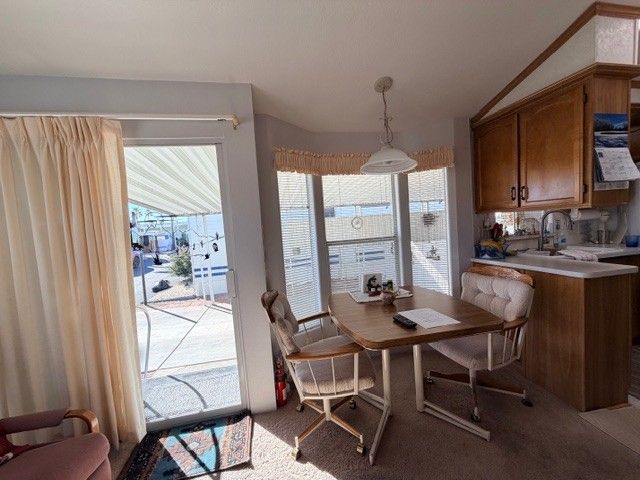 This 1998 park model is situated on a desirable corner lot and offers scenic mountain views. The home features a spacious bedroom with carpet, a queen-size bed, and ample storage, including additional cabinets, counter space, and closets. The large bathroom includes a walk-in shower and extra storage. The kitchen is equipped with a new faucet, microwave, and garbage disposal. Skylights in both the kitchen and bathroom provide abundant natural light. Roof sealant was applied approximately one year ago. An insulated shed with sheetrock walls offers extensive storage and houses the washer and dryer. The property has had only two owners and has been well cared for. The Reserve at Lost Dutchman is a picturesque community in Apache Junction, AZ, known for its stunning views of the surrounding mountains and easy access to hiking trails and outdoor recreation. Residents can enjoy community amenities such as a clubhouse, pool, and fitness center, as well as planned activities and social events. The tight-knit community offers a peaceful and secure living environment, perfect for those looking to downsize or enjoy a vacation home in a beautiful desert setting.