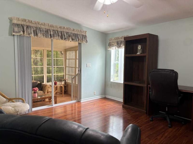 This gorgeous 3/2 has 9-ft ceiling living room with large transom windows really adds to the atmosphere of this charming home. Large island, tons of cabinets and counter space is ideal for the creative cook. The private backyard with large concrete pad for grilling over looks your neighbors fountain is very unique! Great split floor plan, master bedroom's bathroom is massive. This place has a lot of potential for this price not to mention the roof only 5 years old. This home is in a gated 55+ community that is clean, quiet, peaceful, and surrounded by nature. This beautiful community delivers the lifestyle you seek for your retirement dreams. Residents can enjoy the weekly planned activities or other amenities such as bocce ball, shuffleboard, tennis, library, fitness center and clubhouse with free Wi-Fi. Motorcycles and pets (45lb max) are welcome. Act quickly to enjoy all that the Florida lifestyle has to offer.