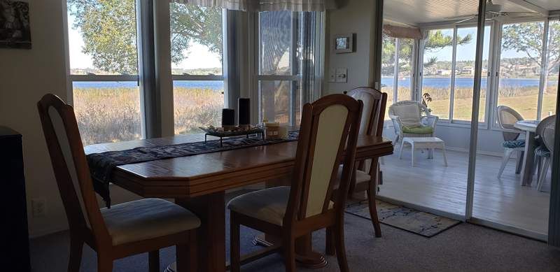 This 1550 square feet manufactured home offers 2 bedrooms and 2 bathrooms. with an open floor plan. The interior features a spacious living room overlooking the lake, dining room, den, and a well-equipped kitchen with all the appliances. The master bedroom includes a walk-in closet. There is also a laundry room for added convenience. The home has a cozy LAKEFRONT Florida room, perfect for enjoying sunsets and weather all year long. The exterior boasts a carport, shed, sprinkler system, and upgraded windows, vinyl siding, making it low-maintenance and visually appealing. This is a ONE owner home and it comes FULLY FURNISHED. Blue Heron Bay is a quaint community located in Haines City, Florida, known for its tranquil surroundings and friendly atmosphere. Residents of this community enjoy amenities such as a clubhouse, swimming pool, spa and fitness center. The community is conveniently located near shopping centers, restaurants, and entertainment options, making it a desirable location retirees. With well-maintained streets and picturesque landscaping, Blue Heron Bay is a welcoming place to call home.
