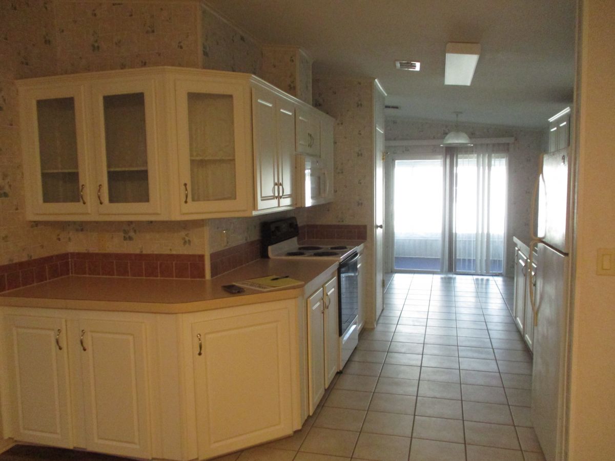 REDUCED! Available for immediate possession, this home has a split plan with 1310sf of living space. There is also a 15’ x 22’ x 12 wrap around screen room that is carpeted and has plexiglass windows, new in 2022. The laundry is located off the breakfast nook and has a new washer(2025). Kitchen has an abundance of cabinet space that wraps around into the dining area and a pantry. Laminate flooring (2024) throughout, with tile in kitchen and baths. There are two large linen closets, one in the hallway (with room for vac and broom) and the other in the master suite. Master suite is in the front of home and has a very large walk in closet with extra shelving. Vanity has drawers and extra cabinets. Bedroom two is 13’ x 12’ and also has a walk in closet . There is a new tankless hot water heater. AC was replaced in 2022 and a new roof was added in 2025.