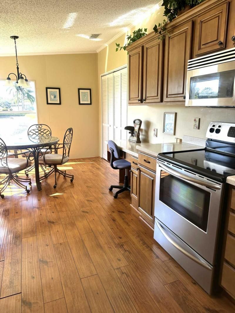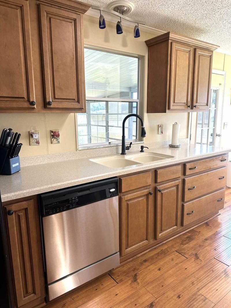 Welcome to this beautiful, spacious 3-bedroom split plan home, offering unparalleled privacy and breathtaking water views! This TURN-KEY residence is ready for you to move in and start enjoying the serene surroundings. Impressive Curb Appeal & Welcoming Entrance: From the moment you arrive, you'll appreciate the beautifully landscaped curb appeal and the spacious double carport with a stylish printed design. A welcoming entrance and sitting area lead you up wide steps into a lovely foyer. Enjoy cool evenings with the convenience of a pocket screened door. Updated & Flowing Interiors: Step inside and discover updated appliances and elegant hard surface flooring that flows seamlessly throughout the main living areas, with plush carpet in the bedrooms for added comfort. The bedrooms are generously sized, and the main bedroom offers a spacious walk-in closet and ample room for a king-size bed. The en-suite bathroom features double vanities and a relaxing garden tub. The home's layout flows effortlessly from one room to the next. Elegant Dining & Scenic Kitchen: The dining room boasts a charming built-in hutch, perfect for displaying your treasured items. The bright and airy kitchen features a delightful breakfast sitting area where you can savor your morning coffee while enjoying the gorgeous pond view. The kitchen is well-appointed with updated appliances. Breathtaking Lanai & Serene Views: Step into the large back lanai and prepare to be captivated by the amazing pond view - your own private oasis of serenity. This is the perfect spot to relax, unwind, and enjoy the beauty of nature. Key Features & Updates: TURN-KEY and ready to enjoy! Beautiful pond view Split bedroom plan for privacy Updated appliances Hard surface flooring throughout (carpet in bedrooms) Good-sized bedrooms Main bedroom with walk-in closet En-suite bathroom with double vanities and garden tub Built-in hutch in dining room Kitchen with breakfast sitting area and pond view Large back lanai with amazing pond view Textured walls Duct work done in 2021 Roof approximately 7 years old A/C (2014) New garage door opener A Must-See Waterfront Gem! This beautiful home offers a unique opportunity to enjoy a private and tranquil lifestyle with stunning water views. Don't miss out - the pictures will truly showcase the beauty of this home. A video tour is also available for your convenience.