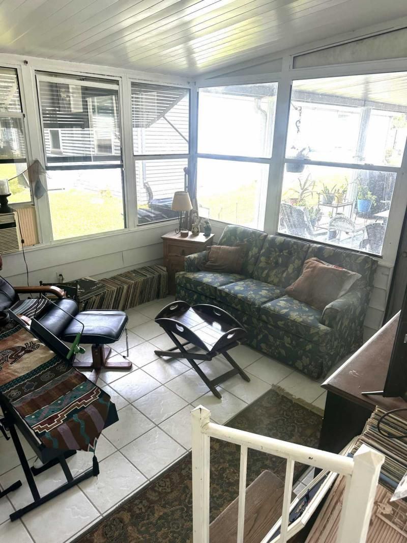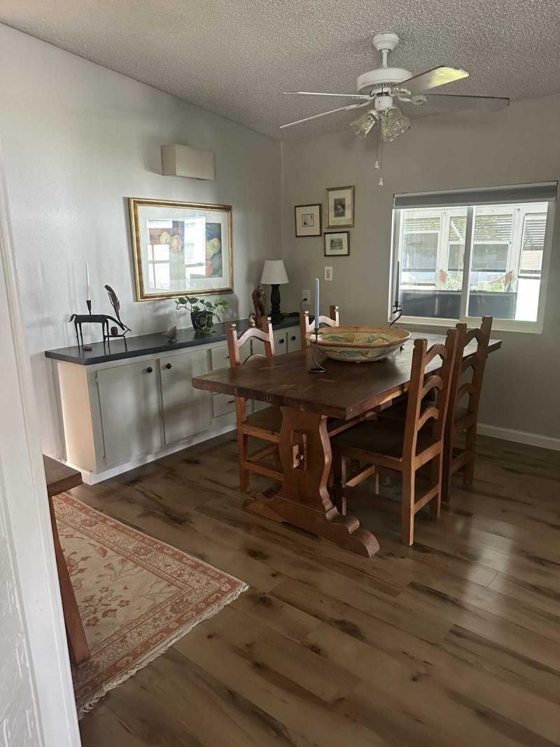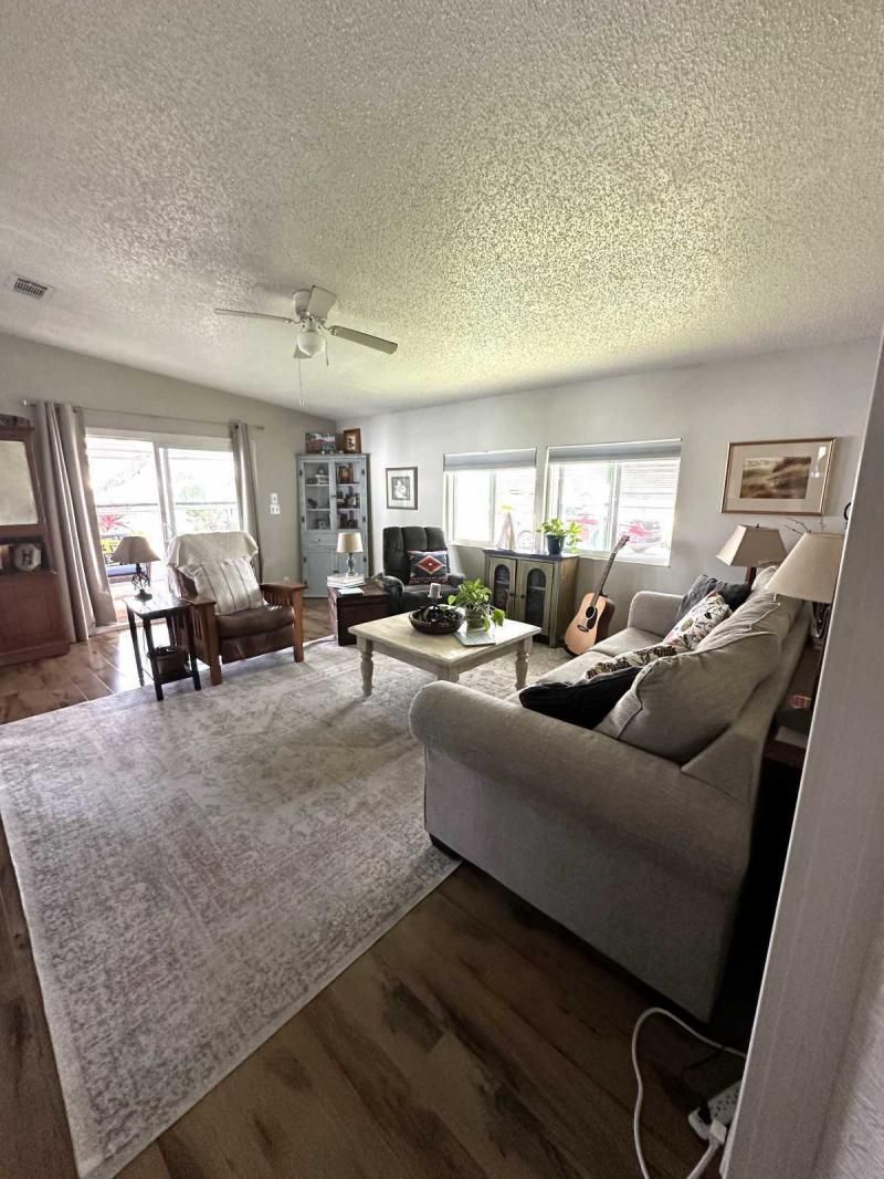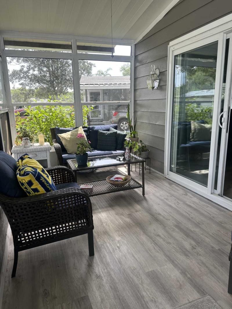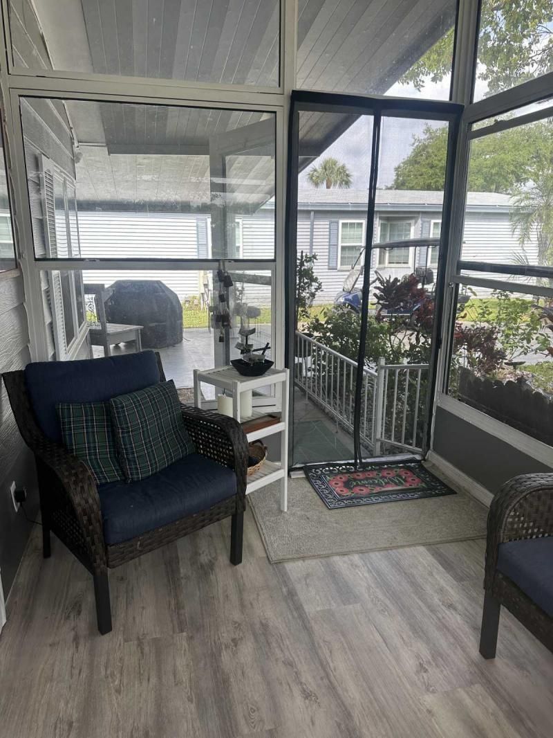 Your Private Oasis Awaits: Stunning Corner Lot 2-Bedroom Retreat! Step into a world of tranquility and charm with this beautifully updated 2-bedroom home, nestled on a spacious corner lot that feels like your own personal oasis. The exterior, freshly painted in a sophisticated gray with crisp white trim, exudes curb appeal and invites you to explore further. Outdoor Living at Its Finest Enjoy the Florida lifestyle with not one, but two lanais! A spacious front lanai provides the perfect spot for morning coffee or evening relaxation, while a private side lanai offers a secluded retreat. A large sitting area out front allows for neighborly visits, and a dedicated golf cart driveway leading to a large shed adds convenience and storage. The meticulously manicured landscaping creates a lush and inviting atmosphere, making this corner lot truly special. Inside, Modern Comforts Await Step inside and be greeted by brand-new flooring, freshly painted walls, and energy-efficient double-pane windows that fill the home with natural light. The open-concept living and breakfast area seamlessly flow into a pass-through kitchen, complete with new stainless steel appliances, making entertaining a breeze. Spacious Bedrooms and Updated Bathrooms Down the hallway, a private laundry room leads to the side lanai, adding convenience to your daily routine. Both bedrooms are generously sized, with the primary bedroom boasting a deep walk-in closet for ample storage. The bathrooms have been tastefully updated with new vanities and high-efficiency toilets, ensuring comfort and style. New light fixtures throughout the home add a touch of modern elegance. Key Features: Large corner lot with oasis-like landscaping Freshly painted exterior (gray with white trim) Spacious driveway and front sitting area Front and side lanais Private golf cart driveway to large shed New flooring throughout Double-pane windows Freshly painted interior Pass-through kitchen with new stainless steel appliances Private laundry room leading to side lanai Spacious bedrooms, including a large primary with walk-in closet Updated bathrooms with new vanities and high toilets New light fixtures throughout Partial furnishings A/C (2018) NEW GOLF CART INCLUDED Don't Miss This Gem! This beautifully updated home is ready for you to move in and start enjoying the Florida lifestyle. Schedule a showing today, or request a FaceTime video tour to experience this oasis for yourself. This pretty home is a must see!