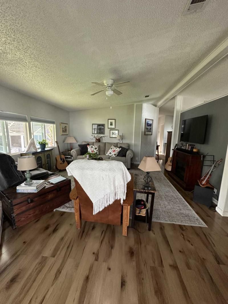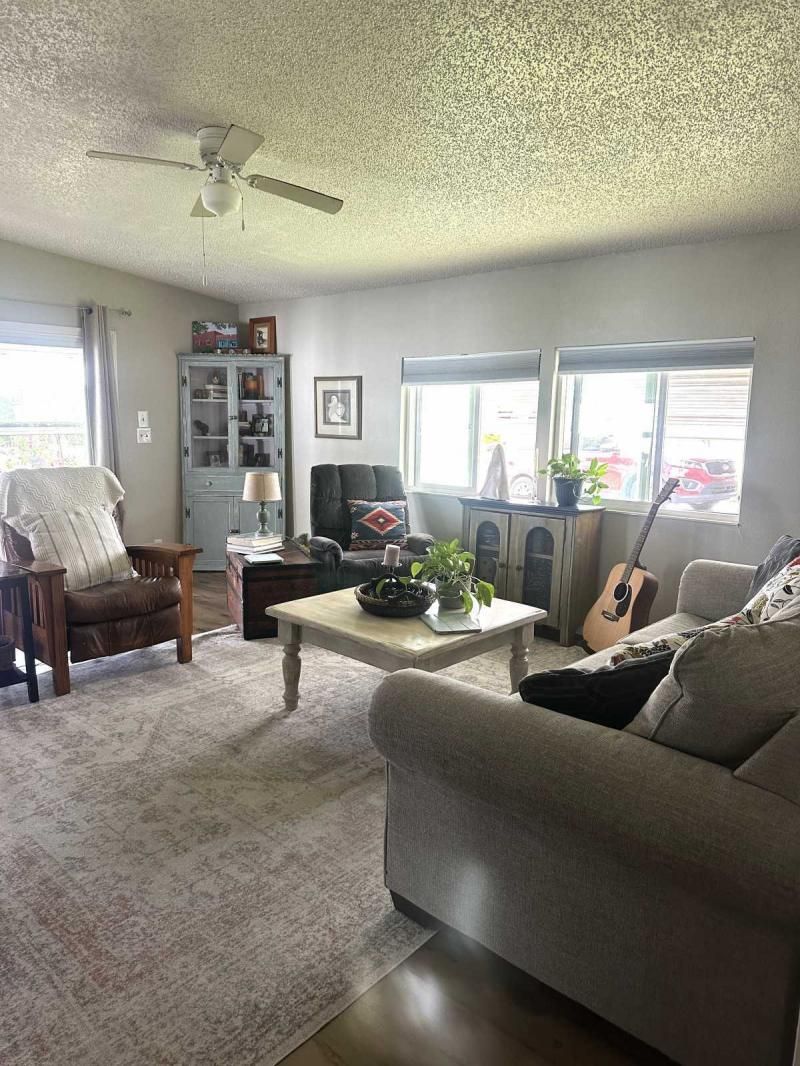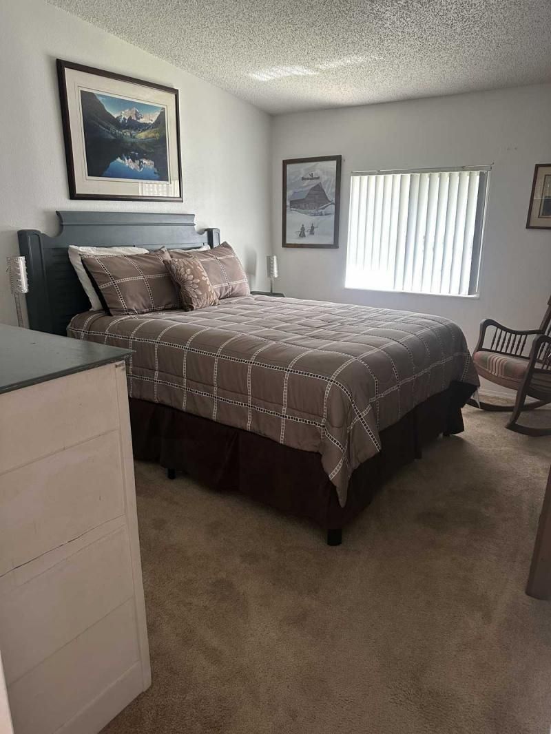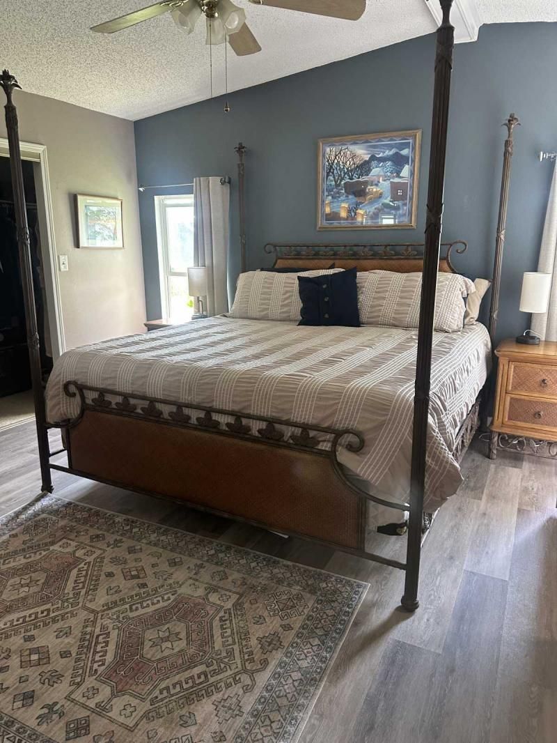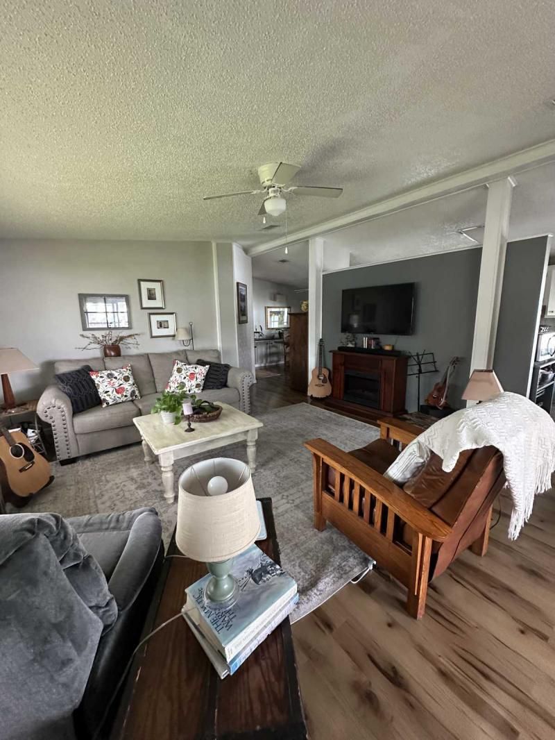 Your Private Oasis Awaits: Stunning Corner Lot 2-Bedroom Retreat! Step into a world of tranquility and charm with this beautifully updated 2-bedroom home, nestled on a spacious corner lot that feels like your own personal oasis. The exterior, freshly painted in a sophisticated gray with crisp white trim, exudes curb appeal and invites you to explore further. Outdoor Living at Its Finest Enjoy the Florida lifestyle with not one, but two lanais! A spacious front lanai provides the perfect spot for morning coffee or evening relaxation, while a private side lanai offers a secluded retreat. A large sitting area out front allows for neighborly visits, and a dedicated golf cart driveway leading to a large shed adds convenience and storage. The meticulously manicured landscaping creates a lush and inviting atmosphere, making this corner lot truly special. Inside, Modern Comforts Await Step inside and be greeted by brand-new flooring, freshly painted walls, and energy-efficient double-pane windows that fill the home with natural light. The open-concept living and breakfast area seamlessly flow into a pass-through kitchen, complete with new stainless steel appliances, making entertaining a breeze. Spacious Bedrooms and Updated Bathrooms Down the hallway, a private laundry room leads to the side lanai, adding convenience to your daily routine. Both bedrooms are generously sized, with the primary bedroom boasting a deep walk-in closet for ample storage. The bathrooms have been tastefully updated with new vanities and high-efficiency toilets, ensuring comfort and style. New light fixtures throughout the home add a touch of modern elegance. Key Features: Large corner lot with oasis-like landscaping Freshly painted exterior (gray with white trim) Spacious driveway and front sitting area Front and side lanais Private golf cart driveway to large shed New flooring throughout Double-pane windows Freshly painted interior Pass-through kitchen with new stainless steel appliances Private laundry room leading to side lanai Spacious bedrooms, including a large primary with walk-in closet Updated bathrooms with new vanities and high toilets New light fixtures throughout Partial furnishings A/C (2018) NEW GOLF CART INCLUDED Don't Miss This Gem! This beautifully updated home is ready for you to move in and start enjoying the Florida lifestyle. Schedule a showing today, or request a FaceTime video tour to experience this oasis for yourself. This pretty home is a must see!