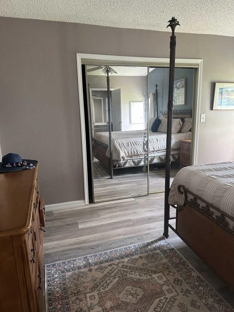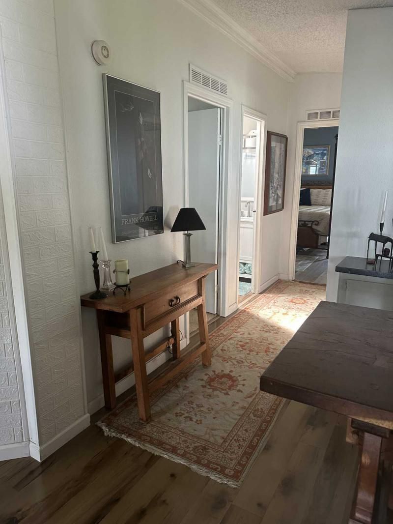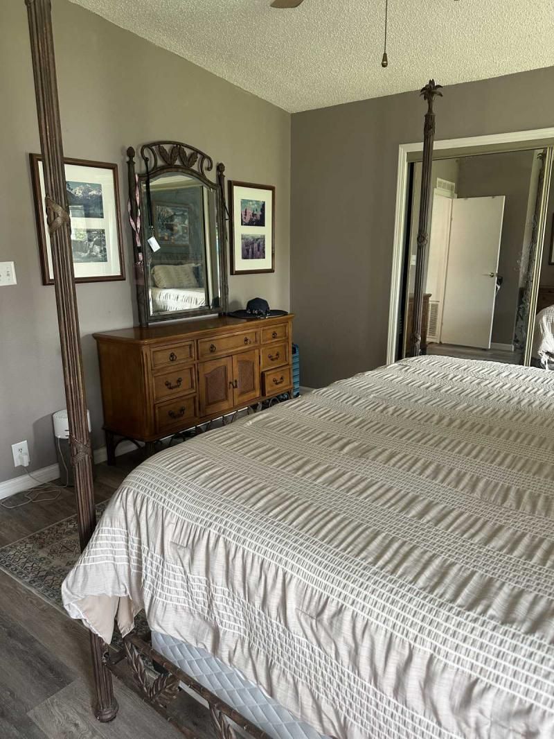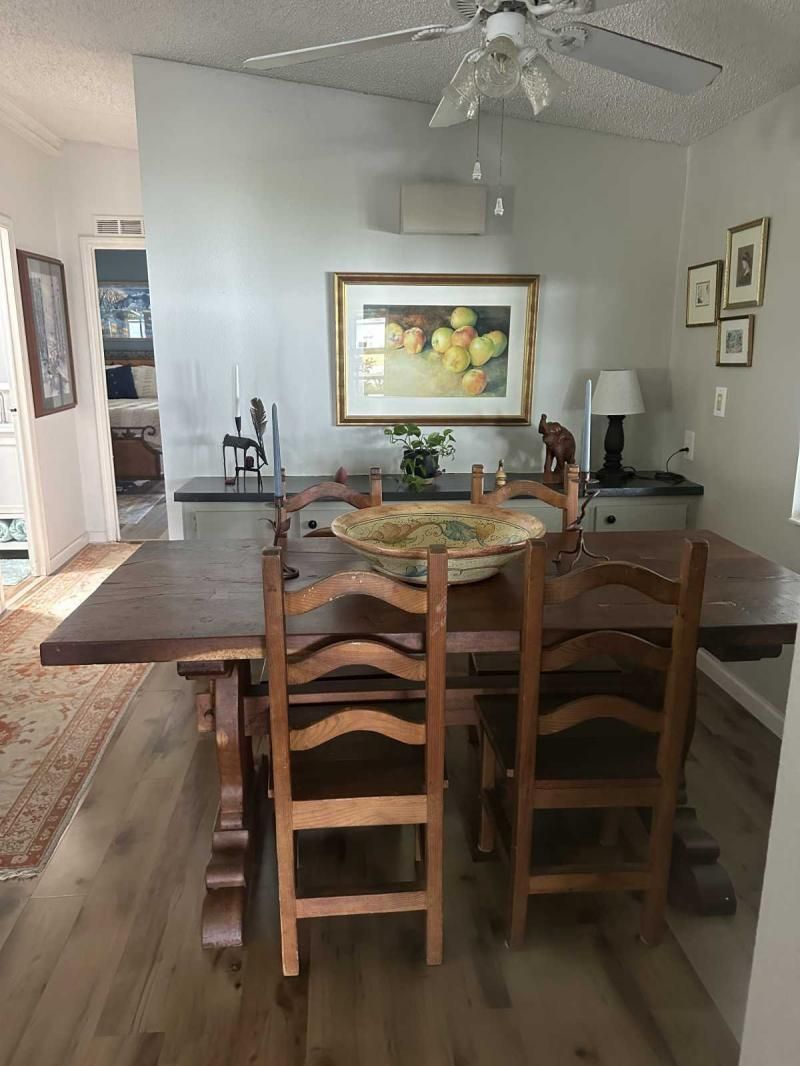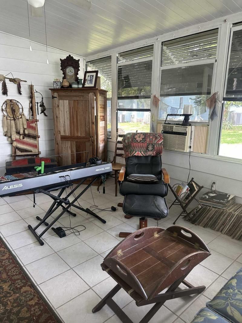 Your Private Oasis Awaits: Stunning Corner Lot 2-Bedroom Retreat! Step into a world of tranquility and charm with this beautifully updated 2-bedroom home, nestled on a spacious corner lot that feels like your own personal oasis. The exterior, freshly painted in a sophisticated gray with crisp white trim, exudes curb appeal and invites you to explore further. Outdoor Living at Its Finest Enjoy the Florida lifestyle with not one, but two lanais! A spacious front lanai provides the perfect spot for morning coffee or evening relaxation, while a private side lanai offers a secluded retreat. A large sitting area out front allows for neighborly visits, and a dedicated golf cart driveway leading to a large shed adds convenience and storage. The meticulously manicured landscaping creates a lush and inviting atmosphere, making this corner lot truly special. Inside, Modern Comforts Await Step inside and be greeted by brand-new flooring, freshly painted walls, and energy-efficient double-pane windows that fill the home with natural light. The open-concept living and breakfast area seamlessly flow into a pass-through kitchen, complete with new stainless steel appliances, making entertaining a breeze. Spacious Bedrooms and Updated Bathrooms Down the hallway, a private laundry room leads to the side lanai, adding convenience to your daily routine. Both bedrooms are generously sized, with the primary bedroom boasting a deep walk-in closet for ample storage. The bathrooms have been tastefully updated with new vanities and high-efficiency toilets, ensuring comfort and style. New light fixtures throughout the home add a touch of modern elegance. Key Features: Large corner lot with oasis-like landscaping Freshly painted exterior (gray with white trim) Spacious driveway and front sitting area Front and side lanais Private golf cart driveway to large shed New flooring throughout Double-pane windows Freshly painted interior Pass-through kitchen with new stainless steel appliances Private laundry room leading to side lanai Spacious bedrooms, including a large primary with walk-in closet Updated bathrooms with new vanities and high toilets New light fixtures throughout Partial furnishings A/C (2018) NEW GOLF CART INCLUDED Don't Miss This Gem! This beautifully updated home is ready for you to move in and start enjoying the Florida lifestyle. Schedule a showing today, or request a FaceTime video tour to experience this oasis for yourself. This pretty home is a must see!