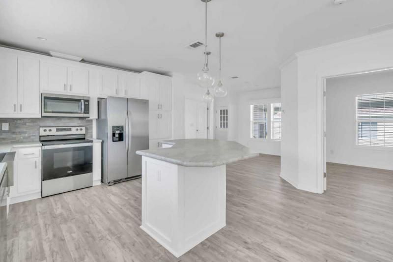Discover Luxury Living in Our Newest Skyline Home! Welcome to our beautiful community at Schalamar Creek, where tranquility meets sophistication. As you enter through the serene quarter-mile drive, the allure of the neighborhood beckons you to explore further. Among our latest offerings is this lovely 2024 Skyline Home. With its distinct charm, this 3-bedroom abode, or 2-bedroom with a den, boasts a split plan design for enhanced privacy when guests arrive. Indulge in the luxury and modernity of the bathrooms, while the kitchen steals the show with its gorgeous open layout, complete with an island for additional seating. Stainless steel appliances, a deep sink with a view, and a pretty wooded area across the street all add to the allure. Relax and unwind in the spacious living room or step outside to the private porch and soak in the New Floridian landscaping. Convenience is key with a private laundry room under the long carport, driveway, and shed-perfect for storing your belongings and even a golf cart, with extra space provided. Immerse yourself in the ambiance of a new home, complemented by special discounts on lot rent - just $199 for the first 6 months. Plus, as an added bonus, enjoy a one-year free membership to golf or a $500 gift card to our restaurant. Experience the elegance and comfort firsthand and schedule your viewing today. You won't want to miss out on this exceptional opportunity!