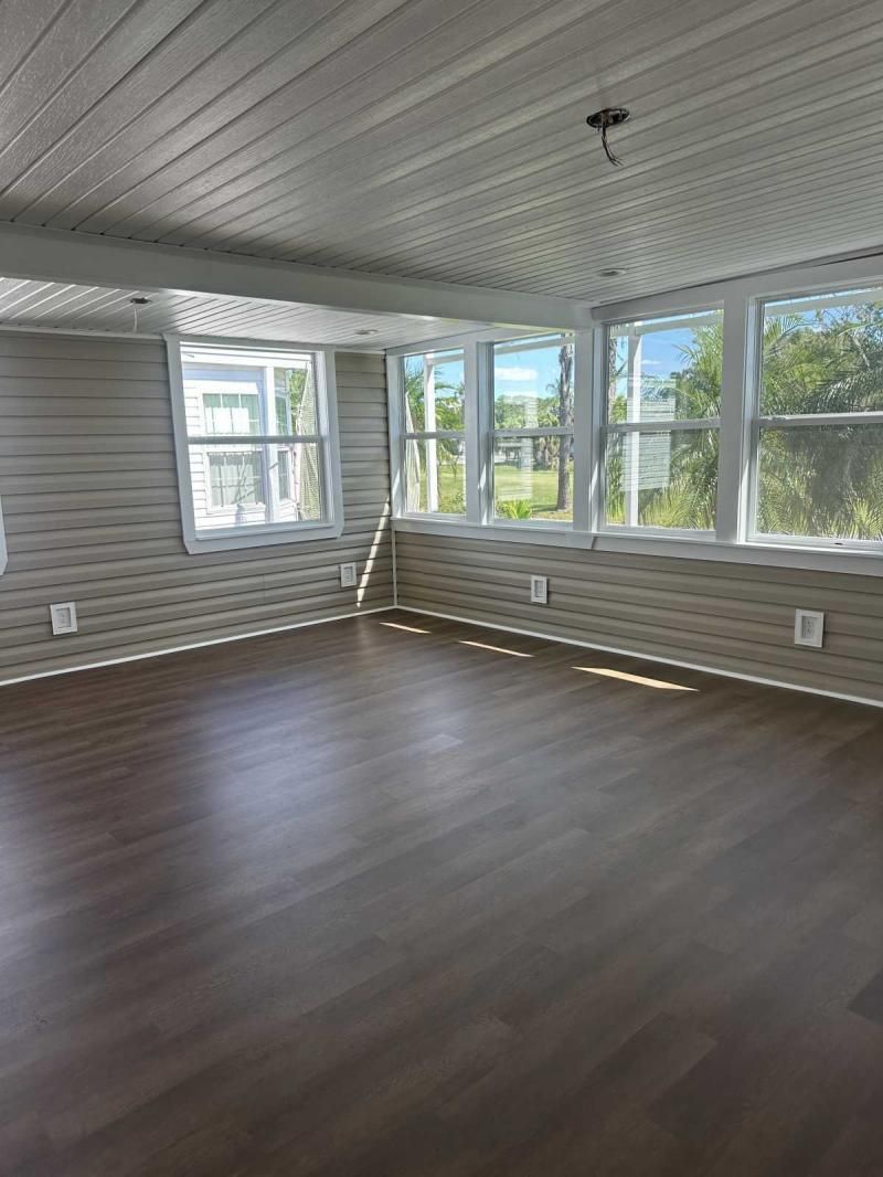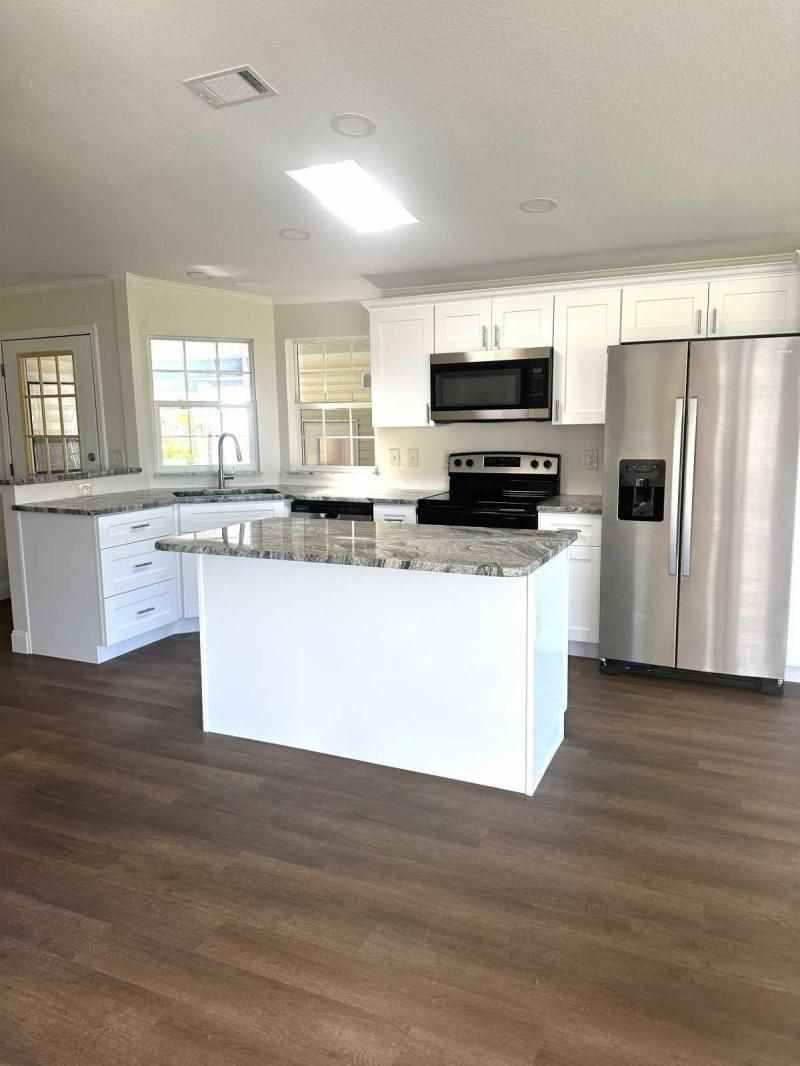 Introducing an Unbelievable Luxury Home! Fully Remodeled 2-Bedroom Golf Course Oasis with Amazing Views! Prepare to be stunned by this truly amazing and completely remodeled 2-bedroom luxury home, offering a premium location right on the golf course with incredible views of ponds from afar and always framed by beautiful skies! Walking into this residence is like stepping into a brand-new custom home. Brand New Everything & Quality Craftsmanship: This home has been completely remodeled from top to bottom, with everything new. The workmanship was executed commercially by a contractor, guaranteeing exceptional, high-quality standards throughout. Bright, Open Concept Living with Stunning Views: Enter directly into the brand-new Florida room, which features new double-pane windows, making it incredibly bright, cheery, and the perfect place to soak in the picturesque view. This view is shared by the large, spacious living room, which features windows all around, contributing to the fantastic open concept. Gourmet Kitchen with Upscale Finishes: The kitchen is a masterpiece, designed with modern elegance. It features beautiful granite countertops, new stainless steel appliances, and a charming farm sink. New cabinetry, modern colors, and all-new flooring and textured walls complete this incredible space. Luxurious Bedrooms & Upscale Bathrooms: Both bedrooms are spacious and offer large wall-to-wall closets. The two bathrooms are absolutely gorgeous, featuring upscale showers and the promise of a quality glass barn door to be installed soon, adding a touch of modern sophistication. Key Features & Highlights: Completely Remodeled (Like walking into a new home) Commercial Quality Workmanship Golf Course Frontage with Amazing Pond Views Brand New Florida Room with New Double-Pane Windows Beautiful granite Countertops & New Farm Sink New Stainless Steel Appliances Textured Walls & New Flooring Throughout Spacious Bedrooms with Large Closets Gorgeous Bathrooms with Upscale Showers Spacious Carport This is quite the home to see and won't last long! Contact us today to arrange your video tour if you are away.