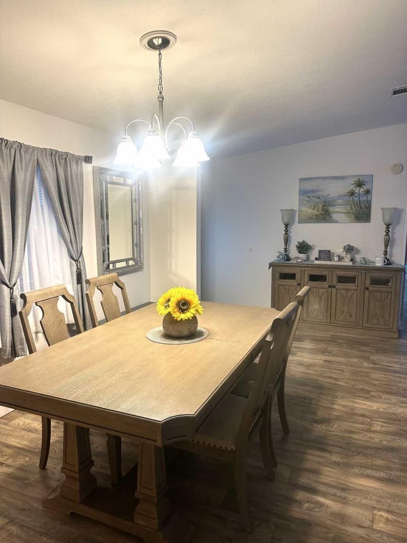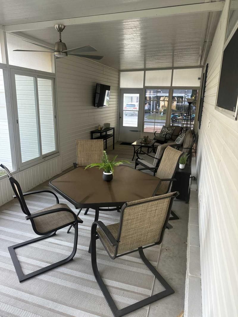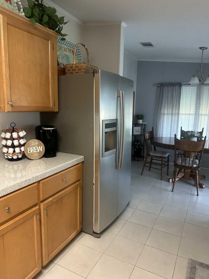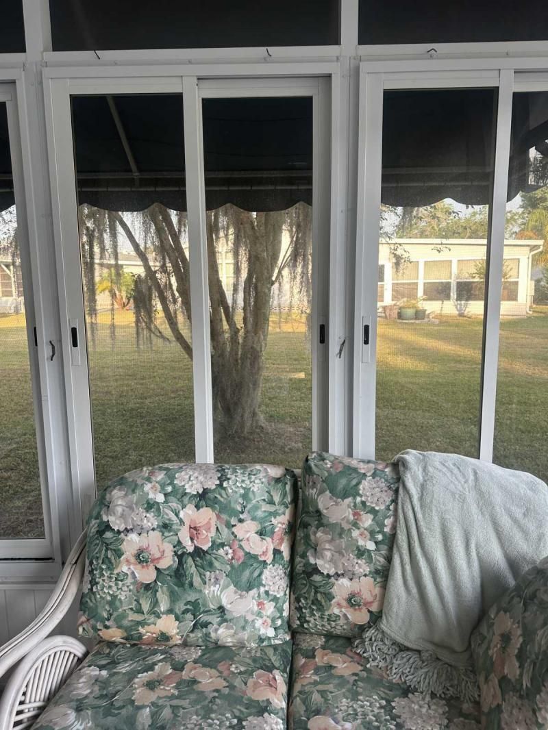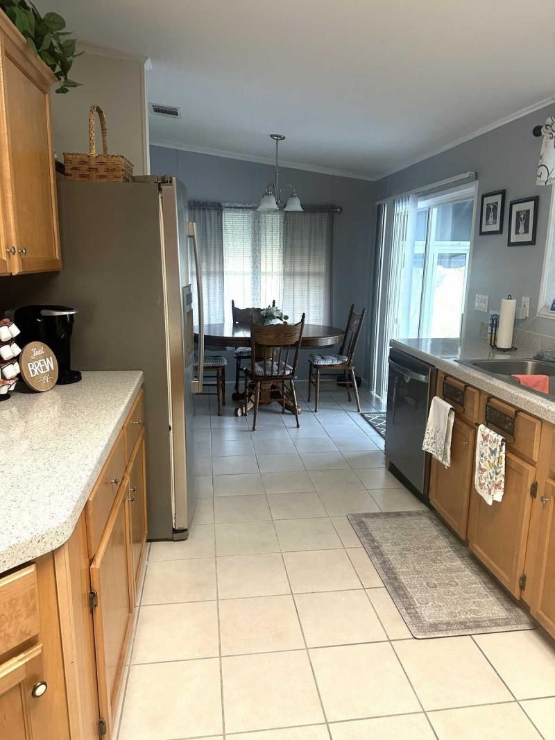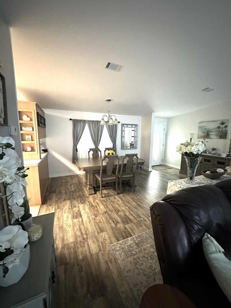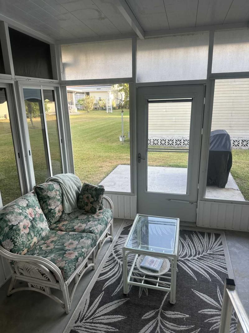Welcome to this beautifully manicured and spacious 3-bedroom home, offered fully furnished and ready for you to embrace the wonderful lifestyle in our community! With hard surface flooring throughout, this residence offers both style and easy maintenance. Beautifully landscaped Spacious & Elegant Living Areas: Step inside and be greeted by a large, open-concept dining and living room, featuring high-quality and tasteful furniture that creates an inviting and comfortable atmosphere. Golf cart negotiable Private & Comfortable Bedrooms: The bedrooms are thoughtfully designed with a split plan, ensuring privacy for you and your guests. Each bedroom is spacious, providing a relaxing retreat. The bathrooms have been tastefully redone, and the primary bathroom boasts a luxurious soaking tub, perfect for unwinding after a long day. Remodeled Kitchen & Inviting Breakfast Nook: The pass-through kitchen has been beautifully remodeled and features sleek stainless steel appliances. A charming breakfast area provides a bright and welcoming space to enjoy your morning meals. Expansive Outdoor Living: From the main living area, step into the overly large lanai, enclosed with screens to allow for refreshing outdoor breezes while keeping insects out. This expansive space is perfect for entertaining a crowd or simply relaxing and enjoying the Florida weather. The backyard offers a sense of privacy between neighboring homes. Key Features & Recent Updates: FULLY FURNISHED and turn-key ready! Hard surface flooring throughout Large open-concept dining and living room High-quality and stylish furniture Split bedroom plan for privacy Spacious bedrooms Remodeled bathrooms Soaking tub in primary bathroom Remodeled pass-through kitchen Stainless steel appliances Charming breakfast area Overly large screened lanai, perfect for entertaining Privacy between homes in the back A/C (approximately 4-6 years old) Roof (approximately 4-6 years old) Don't Miss This Gem! This pretty and well-maintained home offers a wonderful opportunity for comfortable and stylish living in our beautiful community. Schedule your video tour today to experience all that this turn-key residence has to offer!