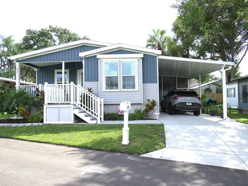 This beautiful 2020 Champion manufactured home located in Summerloch Green offers 1344 square feet of comfortable living space. The home features 2 bedrooms, 2 bathrooms, a spacious dining room, cozy den, master bedroom with walk-in closet, convenient laundry room, modern kitchen with all appliances included, and a luxurious en-suite bathroom off the master bedroom! The kitchen is loaded with cabinets, and ample storage space abounds in this home. The open concept living room is perfect for entertaining guests or relaxing after a long day. Outside, there is a shed for extra storage, a sprinkler system to keep the landscaping lush, beautiful trees on the property, a carport for parking, and an open porch for enjoying the warm Florida weather. The exterior is finished with durable vinyl siding for easy maintenance. Summerloch Green is a charming manufactured home community in Casselberry, FL, offering a peaceful and friendly atmosphere for residents. The community features amenities such as a clubhouse, swimming pool, fitness center, and walking trails for staying active and socializing with neighbors. Residents can enjoy scheduled community events and activities, as well as nearby shopping, dining, and entertainment options. Summerloch Green is conveniently located near major highways for easy access to surrounding cities and attractions, making it an ideal place to call home for those seeking a relaxing and welcoming community.