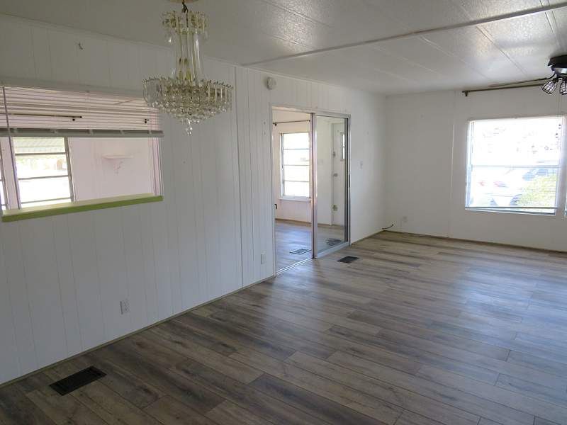 This charming 1248 square feet manufactured home was built in 1979 by Nobility builders. This is a large 2.0 bedroom 2.0 bathroom home with many updates. The spacious interior includes a living room, fully equipped kitchen newer cabinets with a breakfast/dining space and built in hutch. The lovely Florida room is under heat and air, perfect for enjoying the sunny days here in Florida. Pass through window to the FL room for ease of having parties. The primary bedroom boasts an en-suite bathroom with two closets, one is a nice walk-in closet. The guest bedroom is roomy, has siding doors on the closet and sits by the guest bath. Vinyl plank flooring throughout! The exterior of this home boasts a carport for convenient parking, a wonderfully sized screen porch, along with an oversized shed for added storage with washer and dryer included. The screened porch (large area) is a great place for outdoor enjoyment and privacy. New HVAC installed late 2024 early 2025. Are you ready to see this home? We're ready to show you! Call or stop in anytime.