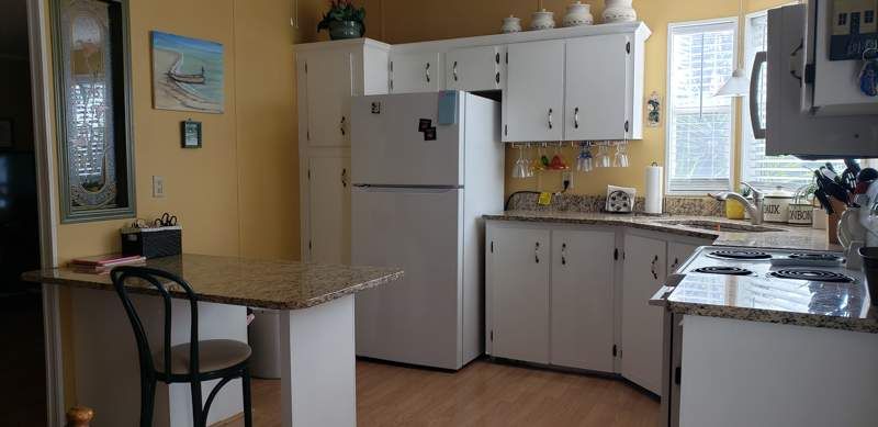 This charming manufactured home in Blue Heron Bay features 2 bedrooms and 2 bathrooms. Built in 1992 by Homes of Merit, this home offers a cozy living room, dining area, master bedroom , two baths will new vanities and new high toilets. fully equipped kitchen with granite counter tops, laundry room, and a lovely Florida room with portable A/C unit for relaxing or entertaining. The exterior of the home boasts a carport with carport tie downs and a shed for extra storage, and a sprinkler system for easy irrigation. The irrigation has it's own meter to save on water costs. The roof is only a year old and the A/C is approx. 2 years old. This is a FULLY FURNISHED - MOVE IN READY HOME waiting for you. 3 MONTHS FREE LOT RENT IF WE CLOSE BY THE END OF APRIL, 2026 Blue Heron Bay is a welcoming community located in Haines City, FL, offering residents a peaceful and tranquil setting to call home. The community features amenities such as a clubhouse, swimming pool, spa and fitness center for residents to enjoy. With lush landscaping and friendly neighbors, Blue Heron Bay provides a sense of community and belonging for its residents. Additionally, the close proximity to nearby parks, shopping, and dining options make this community a desirable place to live for those seeking a relaxing yet convenient lifestyle in sunny Florida.