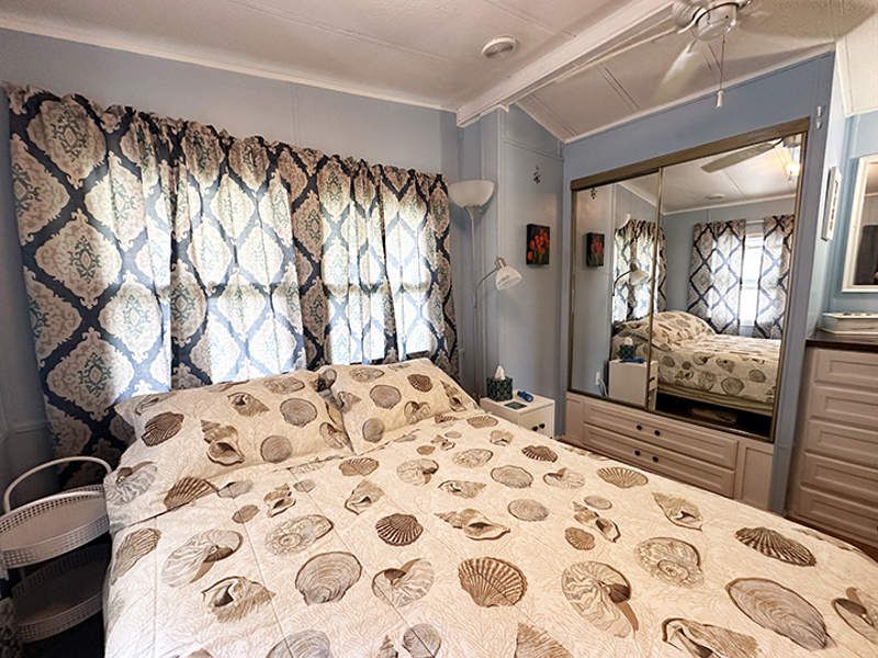This super-cute 1 bedroom, 1 bathroom home is move-in ready. This home is modern yet cozy. A beautiful corner lot with a great view accents this great home. It is furnished and ready for you for either a great seasonal home or a full time residence. The kitchen is compact yet functional, with modern appliances and plenty of cabinet space for storage. The living room is cozy and inviting, with large windows that let in plenty of natural light. The bedroom is spacious enough for a queen-sized bed and has a sizable closet for storage. The bathroom features a shower/tub combination and a vanity with plenty of counter space. The home also has a small porch area perfect for enjoying the Florida weather. Leased land. Bonita Terra is a charming community located in the heart of Bonita Springs, FL. Residents of this community enjoy a variety of amenities, including a clubhouse, swimming pool, and tennis courts. The community is well-maintained and offers a peaceful and tranquil environment for residents to enjoy. Additionally, Bonita Terra is conveniently located near shopping, dining, and entertainment options, making it an ideal place to call home for those looking to embrace the Florida lifestyle.