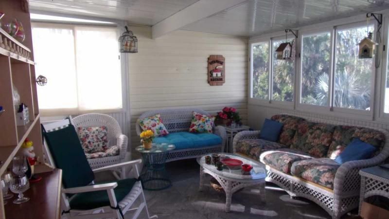 Like New 2017 Skyline Large Gorgeous Home, 1,568 sq. ft., open floor plan complete with furniture, features 2-bedroom 2 Bath with large Den. Both Bedrooms have large walk-in closet. Custom Interior painting throughout. Fully equipment kitchen, white appliances. Large Screened liana at the back of the carport. Large covered carport with special cement flooring. This beautiful home will not be on the market long.