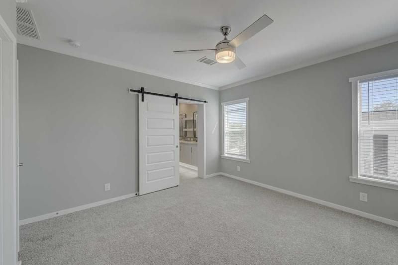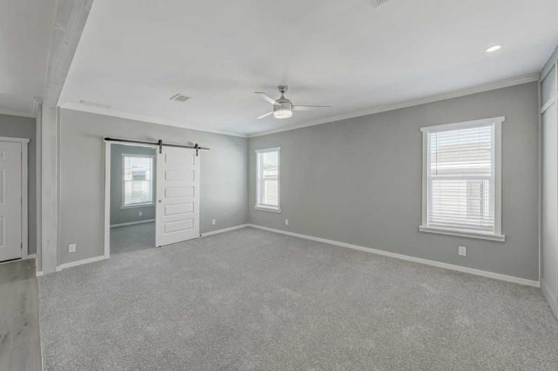 Brand New 2025 Palm Harbor! 1386 sq Ft of beauty. This home features 2 bedrooms, 2 bathrooms, a den and a laundry room. As you walk into this home the first thing you see is the beautiful kitchen with gorgeous glass tiled back splash, stainless steel appliances, upgraded rangehood and beautifully crafted kitchen cabinets. The living area features a trimmed accent wall with sliding barn doors for the den. But wait until you walk into the master bathroom!! This room features double sinks, tiled backsplash, and a tiled shower. The shower has double shower heads, including a rain head. There is a separate vanity area and tons of storage. Give me a call, I can't wait to show off this home!!