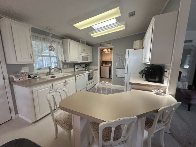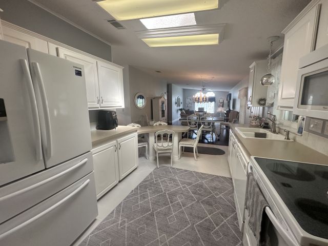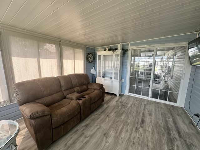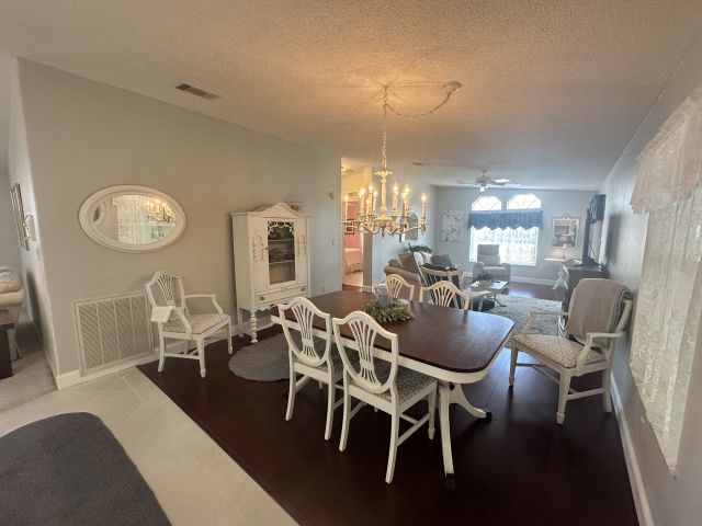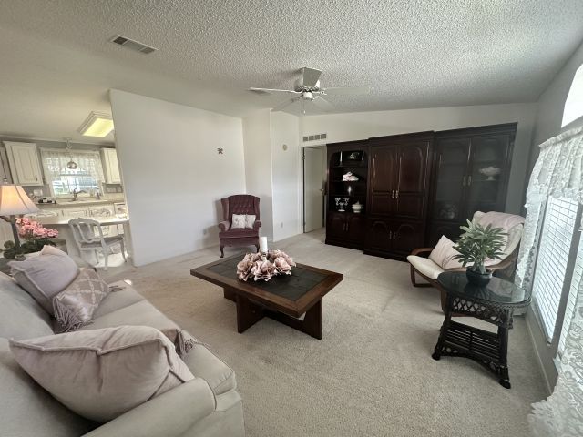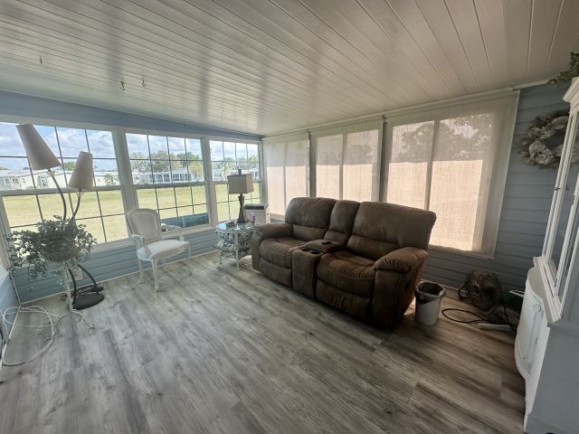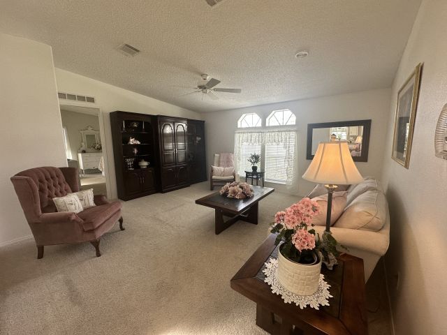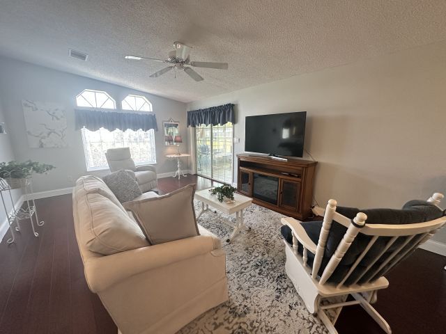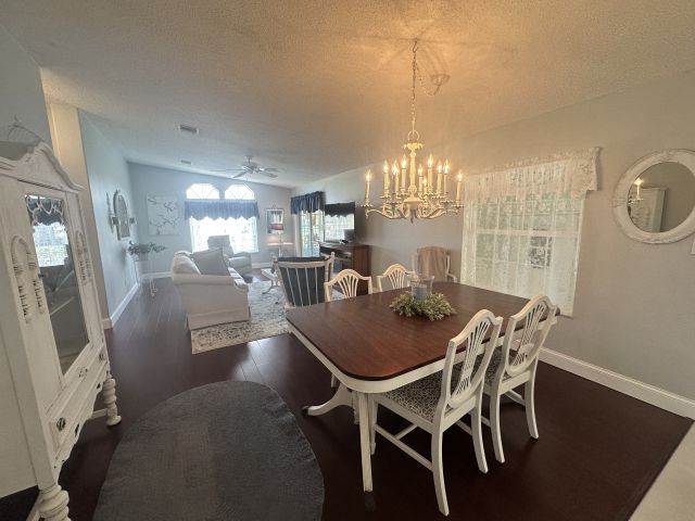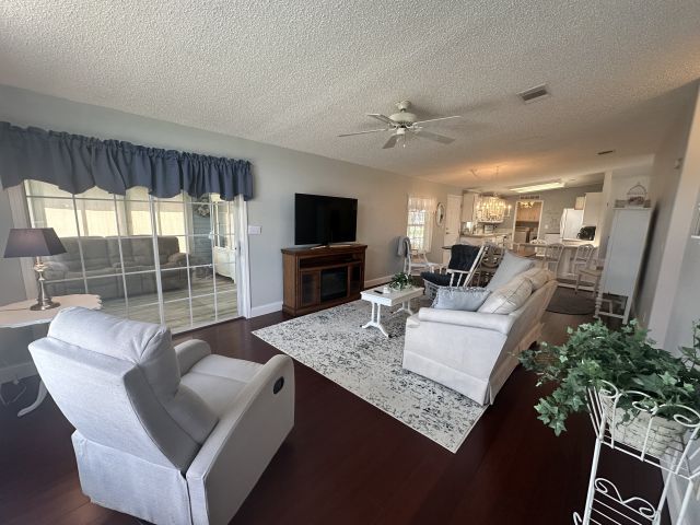 STUNNING GOLF COURSE HOME WITH LAKE HAINES VIEWS! 2000 Jacobsen Lot 659 |Reduced to $129,900 | Three Bed | Two Bath | 1,680 sq. ft. This spacious 2000 Jacobsen home offers over 1,600 sq. ft. of beautifully updated living space, situated right on the golf course with breathtaking views of Lake Haines! This split-plan gem is a perfect blend of vintage shabby chic decor and modern touches, providing both comfort and charm. Inside, you'll find tape and textured walls throughout--even in the bathrooms--along with newer windows that invite in ample natural light. The home features both a cozy living room and a separate family room, making it ideal for entertaining or unwinding. KEY FEATURES: -Laminate plank flooring -Drywall throughout -FULLY FURNISHED -Indoor laundry room The large primary bedroom is a true retreat, complete with a spacious en-suite bathroom and a huge walk-in closet! A charming screened in patio is situated at the front of the properties entryway and an enclosed lanai is at the back, offering serene views of the 15th fairway and Lake Haines. This home is being sold TURNKEY, fully furnished and move-in ready! Plus, the purchase includes the golf cart (pictured in the shed) and ONE YEAR FREE GOLF ~ a golfer's dream come true! Don't miss out on this incredible opportunity to own a slice of paradise. Contact our onsite Resale Agent today to schedule your showing or make an offer. Agent: Cheryl Dobbs Phone: (863) 608-2599