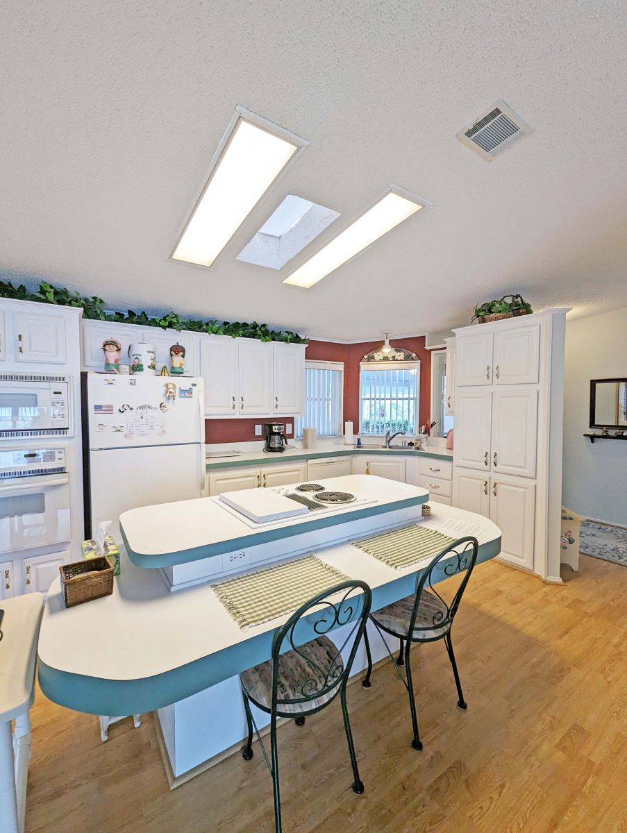 2 Bedrooms | 2 Baths | 1,456 sf | $119,900 PRICE REDUCED – MUST SELL! Lot 390 in Four Lakes Golf Club is a beautifully maintained garage home offering 2 bedrooms, 2 bathrooms, and stunning views of the 5th green and pond from the living room, lanai, and patio. Inside, enjoy vaulted ceilings and a bright, open floor plan. The island kitchen features skylights, ample cabinets, a built-in wall oven, microwave, and a two-tier island with a stovetop. The primary suite boasts an extra-large bedroom, walk-in shower, built-in vanity, and floor-to-ceiling storage. A spacious guest bedroom, large laundry room, and guest bath with skylight complete the home. Both the extra-large Florida room, which offers panoramic golf course views, and the covered cement patio are perfect for enjoying the beautiful year-round weather. HIGHLIGHTS INCLUDE: - A/C and waterlines replaced in 2023 - Garage - Fully furnished – move-in ready! - Golf cart included - One year of FREE golf! This turn-key home is ready for you to enjoy. Don’t wait—schedule your showing today! Contact Cheryl Dobbs: (863) 608-2599