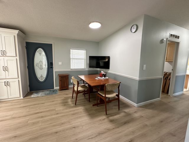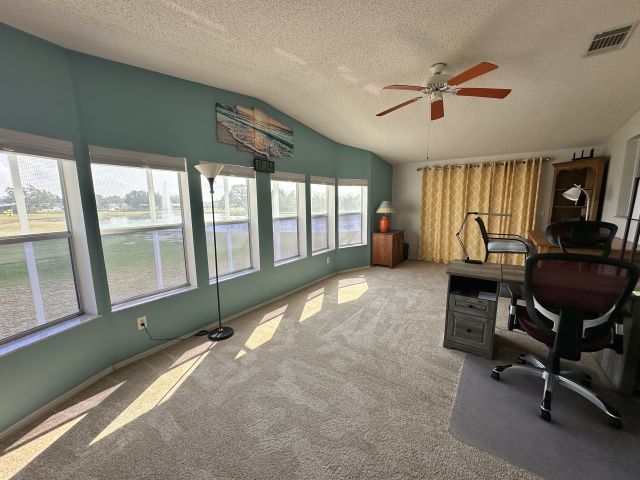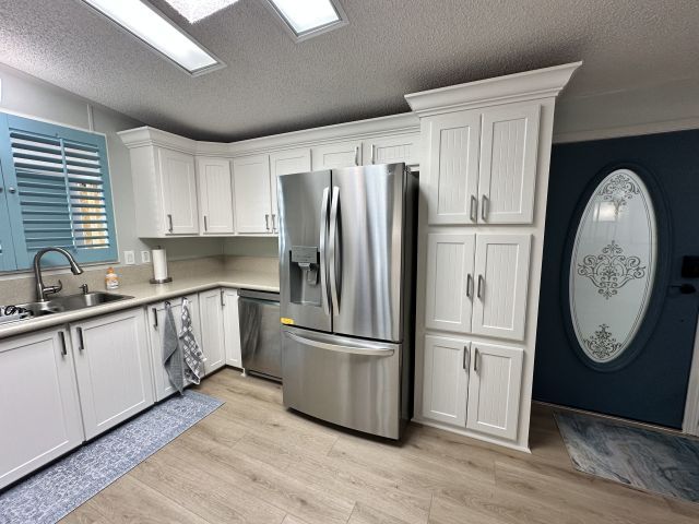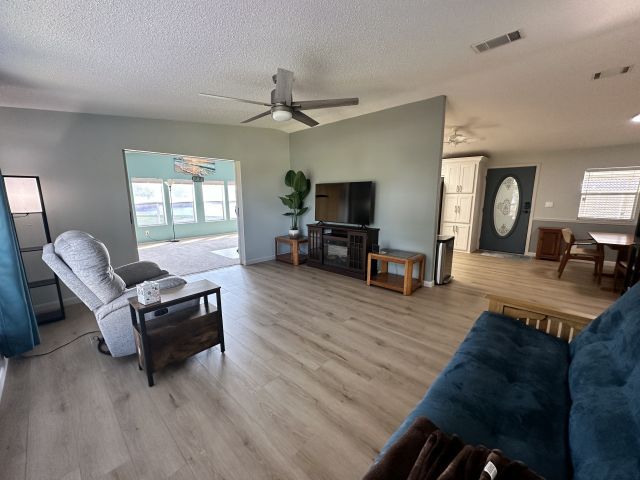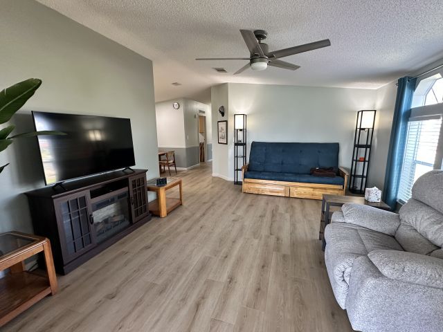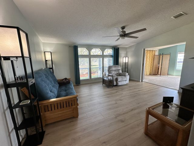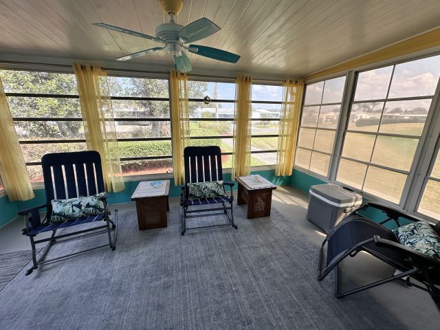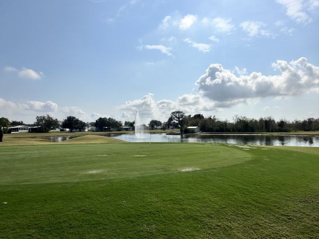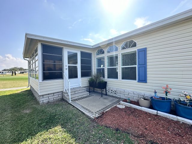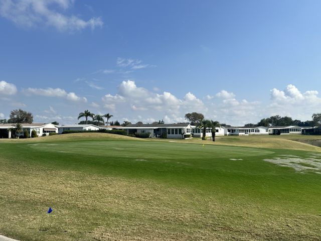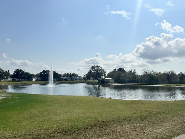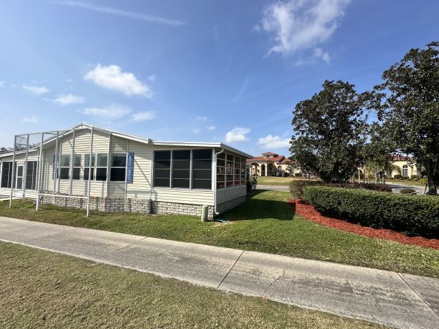 SPACIOUS HOME ON OVERSIZED CORNER LOT ACROSS FROM CLUBHOUSE! Lot 342 | Price drop from $165,000 to $152,000 | Two Bedroom | Two Bath + Den | 1,720 sq. ft. Located on a prime corner lot directly across from the clubhouse, this one-of-a-kind home offers breathtaking views of the 18th green overlooking a picturesque pond with lighted fountain--a truly stunning sight at night! With over 1,700 sq. ft. of living space, this beautifully designed home features a living room, veranda room, two bedrooms, two bathrooms, and a dedicated office. RECENT UPDATES INCLUDE: -Renovated kitchen with stainless steel appliances -Laminate Flooring throughout (with carpet in veranda room) -Drywall in main living areas and bedrooms Enjoy the Florida lifestyle from either the screened-in porch or the enclosed lanai, both offering unbeatable views on either side of your home! This home is being sold mostly furnished and is move in ready! Don't miss this rare opportunity to own a home merely steps away from our Clubhouse! Contact our onsite Resale Agent today to schedule a private showing or make an offer. Agent: Cheryl Dobbs Phone: (863) 608-2599