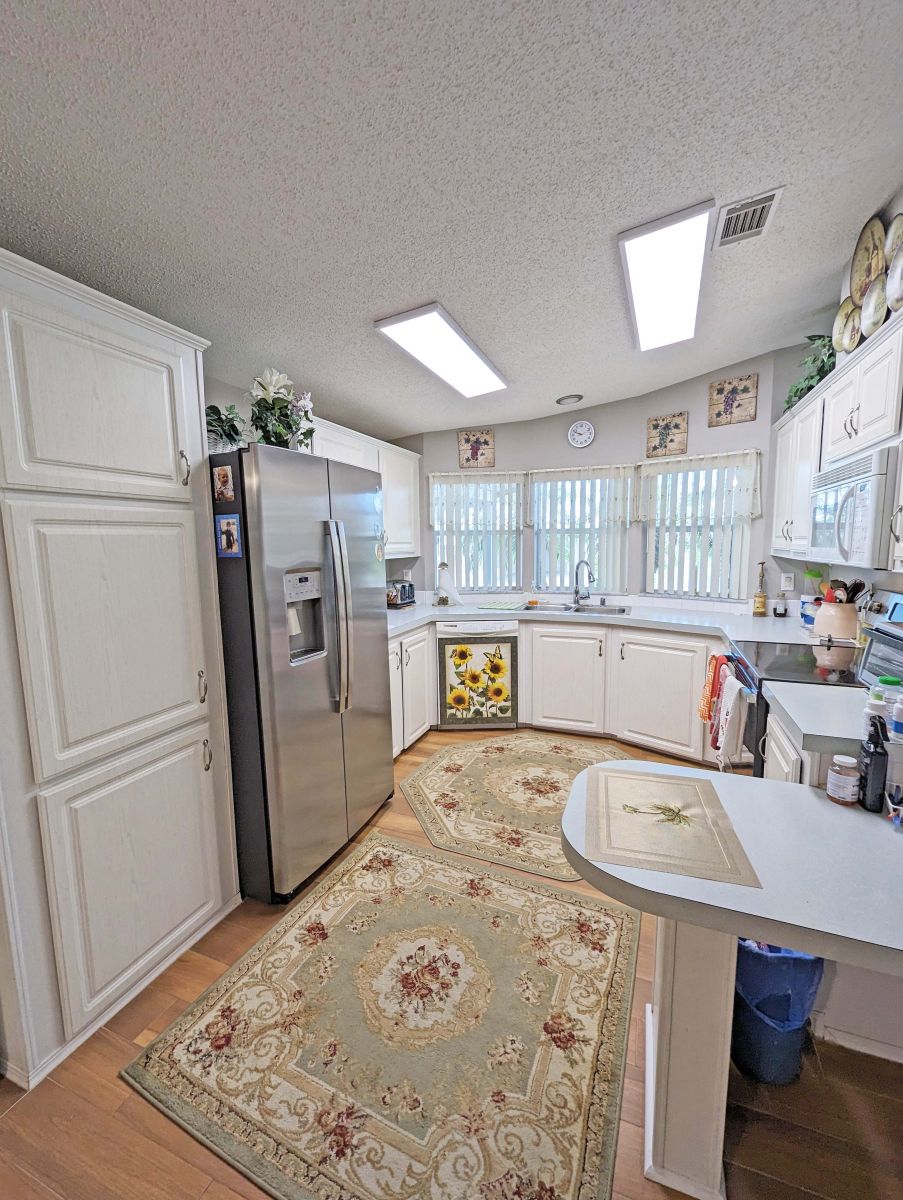 2 Bedrooms | 2 Baths | 1,479 sq ft | $149,900 Lot 539 is a well-maintained doublewide in the sought-after Four Lakes Golf Club Retirement Community. This home boasts a lot of unique features, and it is one you will want to see for yourself! Some features you will love: Spacious Living: Ceramic wood-look tile flooring flows through the main living areas, providing a clean, modern look. Year-Round Enjoyment: The beautiful front lanai, complete with heat and air, doubles as bonus living space perfect for relaxing or entertaining. Unique Extras: The full garage includes a “man cave” with a minisplit system, adding even more versatility. purchase includes newer golf cart plus ONE YEAR FREE GOLF! Move-In Ready: Being sold turn-key, this home is ready for you to make it your own! Don’t miss this chance to enjoy active, friendly, Central Florida living at its best – schedule your showing today: 800-826-7076