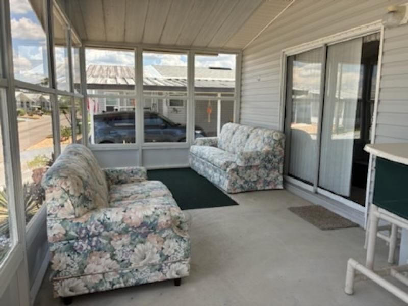 Welcome to Heartland Estates! An active, beautiful and inviting community! Where your new home awaits you! We are excited to show you this fully furnished 2B2B home that embraces the ambiance of relaxation & retirement. Whether you are beginning your day with a cup of coffee in your north facing sunroom, strolling down the street to join a community event/party, having new friends over to socialize in your spacious living room. Our retirement community is the place to be. This home is beautifully designed for comfort & casual living. This home boasts many new upgrades. A new AC 2024, New roof, new carport, new plumbing & new Vinyl floors T/O, all done in 2025! This move-in ready home has a large & rare laundry room, Primary bedroom has a walk in closet, Primary en-suite has large counter top with dual sinks & a comfort toilet and the shed has a built in work bench. This charming home will accommodate all your needs. Time to relax, head into your spacious North-facing sunroom for your morning cup of coffee or an after dinner drink. You deserve a community where you can enjoy a lifestyle filled with activities, events, and opportunities to connect with new friends. Whether you are swimming in the heated pool, working out in the gym, reading a book in the library, or attending one of the many events; Your sure to feel at home. Homes in this active & fun community sell fast, this beautiful property is waiting for you! We are waiting to welcome you home! 55+