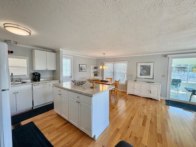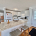 Step into this stunning, move-in-ready 2-bedroom, 2-bath manufactured home featuring an open-concept floorplan and numerous modern upgrades. The spacious main living area flows seamlessly into the kitchen and dining spaces, creating a bright and welcoming atmosphere perfect for entertaining or relaxing at home. The huge primary bedroom offers plenty of room to unwind and includes an ensuite bathroom with two closets and a remodeled walk-in shower. The second bathroom also features a walk-in shower, beautifully updated in 2018. Throughout the home, you ll find gorgeous natural red oak wood floors that add warmth and character. The kitchen comes fully equipped with all appliances, ready for your culinary creations. Enjoy peace of mind knowing the roof and A/C are just one year old. Additional updates include new exterior paint (2019), new siding, windows, and doors (2019). Outside, you ll love the large shed with laundry area and convenient golf cart parking. A rare four-car driveway provides ample parking. This upgraded home combines comfort, style, and functionality truly a must-see!