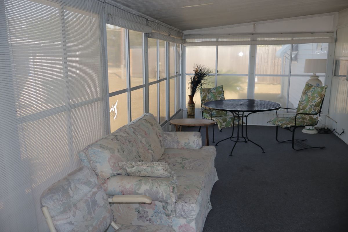 Soak up the sun in this 2 bd / 2 ba 672 sq ft. home. Split floor plan with bedroom and bathroom on opposite sides of the home. This home is sold with a list of what homeowner is taking after the sale. Enjoy the 10’ X 20’ Raised Vinyl Screen Lanai, 6’ X 8’ Shed. Washer & Dryer in Shed.