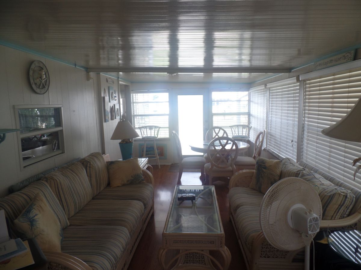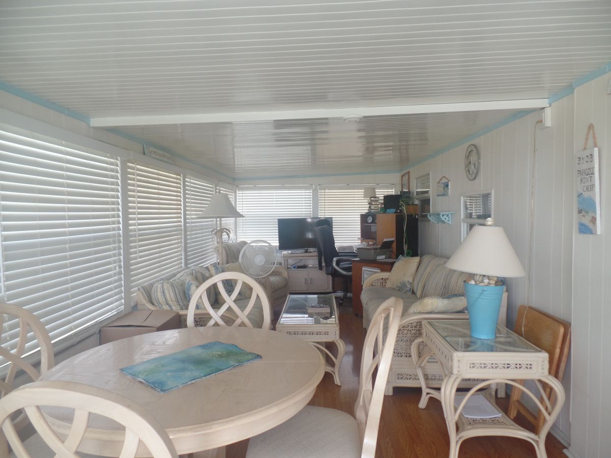HANDY MAN SPECIAL WITH GOLF CART! This home will make it possible for you to stop & enjoy the Florida lifestyle! Orange Acres is only minutes away from Siesta Key beaches, Lido Key beaches and downtown Sarasota. Looking for some fun in Sarasota - Mote Marine Laboratory & Aquarium, The Ringling Museum, St. Armand's Circle, Marie Selby Botanical Gardens, Myakka State Park, Manatee Performing Arts Center, Van Wezel Performing Arts Hall, Lecom Park Pittsburgh Pirates, Ed Smith Stadium Baltimore Orioles and many more things todo. Also, convenient to dining out, shopping and medical facilities around the area. This 648 sq. ft. home has 2 bedroom and 1.5 bath. The home is furnished with list of what is staying in the home.. Enjoy the 9’ X 23' Raised Level Finished Room, 12’ X 15’ Shed. Washer & Dryer in Shed, Panel Wall Board, and Crown & Base Molding. YEAR BUILT: 1968 FLOOR SIZE: 12’ X 54' EXTERIOR COVERING: Vinyl, WALKING SURFACE MATERIALS & DRIVEWAY: Concrete, GARAGE TYPE: Carport, ROOF TYPE: Mobile Home, ROOF OVER: Yes, ROOF OVER TYPE: TPO Rubber Roof, ROOF CONDITION: Good, ROOFING MATERIAL: Metal, TPO Rubber Roof, GUTTER MATERIAL: Metal, FOUNDATION TYPES: Crawlspace, FOUNDATION MATERIALS: Block, Wood, FLOOR STRUCTURE: Manufactured Wood Floors, WALL STRUCTURE: Wood Framed, TYPE OF SERVICE: Underground, SERVICE PANEL LOCATION: Master Bedroom Closet, SERVICE VOLTAGE: 120/240, SERVICE AMPERAGE: 100 amps, WIRING METHOD: Copper, Single Strand Aluminum, WINDOW TYPES: Single Hung, Crank Out, WINDOW MATERIALS: Metal, ENTRY DOOR TYPES: Hinged, ENTRY DOOR MATERIALS: Metal, ENERGY SOURCE HEATING & COOLING: Electric, 2.5 Ton HVAC (6 Years old) AC in good working order, WASTE PIPE MATERIAL: ABS, PVC SUPPLY PIPE MATERIAL: Cooper, Galvanized WATER HEATER FUEL: Electric, WATER HEATER CAPACITY: 40 - Gal (5 years old – Shed) LAUNDRY LOCATION: Shed, KITCHEN CABINETS: Laminate, KITCHEN COUNTERTOPS: Laminate, CEILING FANS: 3 SKY LIGHTS: 0 IMPROVEMENTS: Last several years - New Blinds in Living Room, Water Heater, A/C, Stove & Fridge, Floors, 2-New Toilets, New Sink in 1/2 Bath, Master Bathroom Cabinet on Wall, All homes that are listed with the office have had 3 inspections - Termite Inspection ( No visible signs of WDOS at inspection time), Tie Down Inspection ( All Tie Downs are in good condition) and Home Inspection for the buyer's peace of mind. Resident Association has several activities including Coffee Hour, Crafts, Billiards, Cards, Book Club, Bingo, Shuffle Board, Water Exercise, Dances, Ice Cream Social, Potluck, Bible Study and many more events throughout the year. Enjoy the low lot rent (757.00 - 2025) on this home site in Sarasota. Lot rent includes: garbage & recycling & yard waste pickup / grass cutting all year / tree trimming / fire, storm water, & ambulance assessment /chaplain available /use of all amenities (community centre with dance floor, business centre & free Wi-Fi, library, media centre & billiards room), courtyard with fountain & seating area/ heated pool / shuffleboard courts / corn hole / golf net / resident tool shed / 3-ponds. Notice: 1. Age Restricted 55+ Community 2. Application Required for Residency 3. No Dogs 4. Land Lease 5. NO HOA & Association Fees 6. Activities ALL year long - Must See!!!