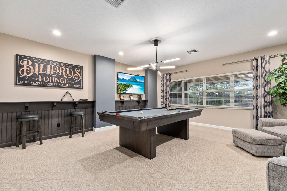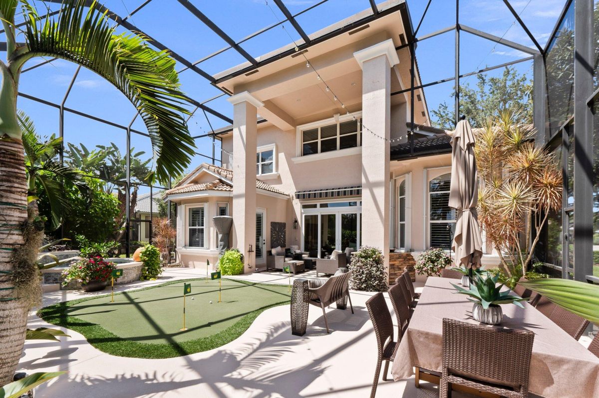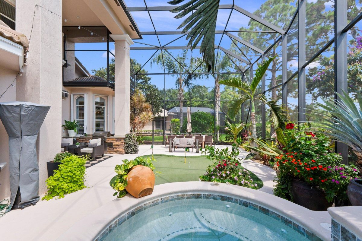Look no further, you have found your Dream Home, the ONLY COMPLETELY UPGRADED home on the market in PGA Village. Thinking this would be their forever home, the seller spent way over $400,000.00 totally renovating the entire house. This luxurious 4 bedroom, 3.5 bath home with 3458 square feet of living area is the perfect home for a large family or those that love to entertain. Complete with a large billiard room that the seller crafted with the builder to create a separate family fun area, giant kitchen open to family room, oversized two story fully screened back yard with custom 5-hole putting green, gorgeous summer kitchen, completely renovated built in hot tub with waterfalls and lush landscaping all overlooking the 11th Fairway of the scenic Ryder Course. The newly renovated