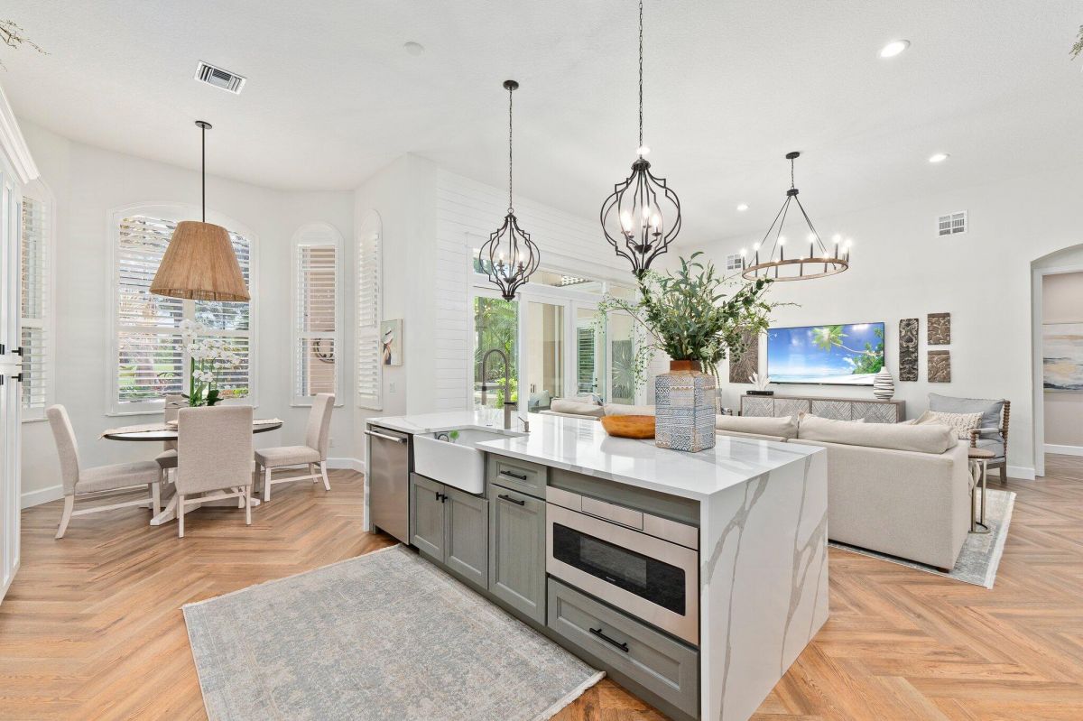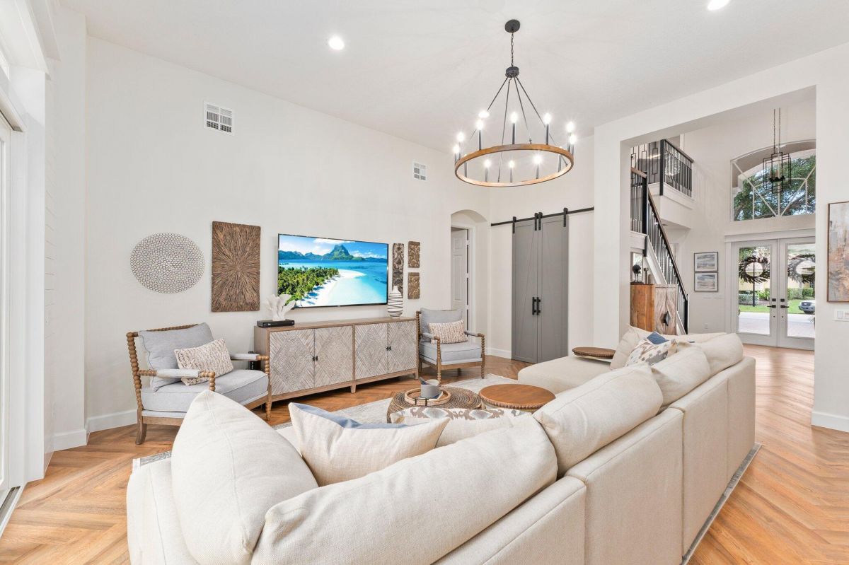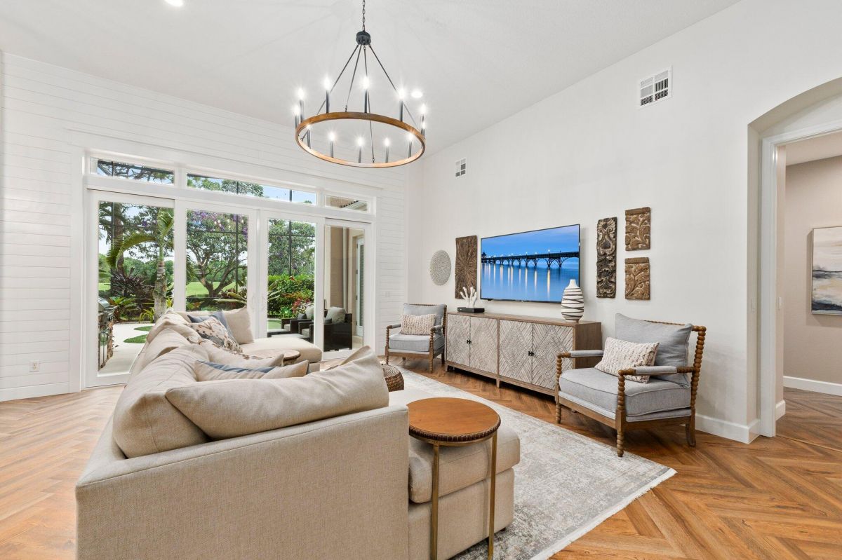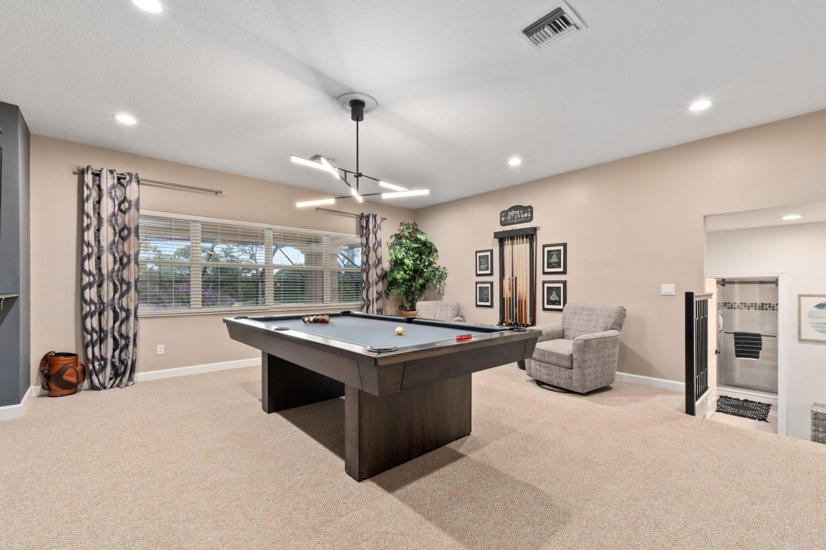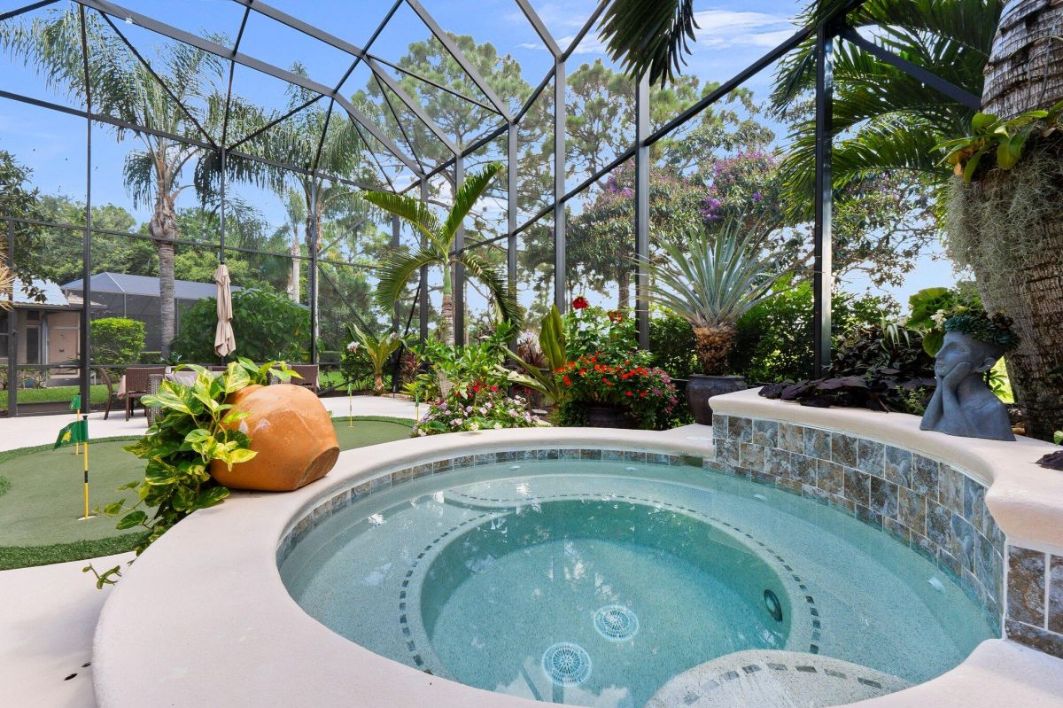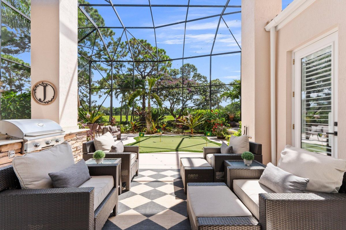 Look no further, you have found your Dream Home, the ONLY COMPLETELY UPGRADED home on the market in PGA Village. Thinking this would be their forever home, the seller spent way over $400,000.00 totally renovating the entire house. This luxurious 4 bedroom, 3.5 bath home with 3458 square feet of living area is the perfect home for a large family or those that love to entertain. Complete with a large billiard room that the seller crafted with the builder to create a separate family fun area, giant kitchen open to family room, oversized two story fully screened back yard with custom 5-hole putting green, gorgeous summer kitchen, completely renovated built in hot tub with waterfalls and lush landscaping all overlooking the 11th Fairway of the scenic Ryder Course. The newly renovated