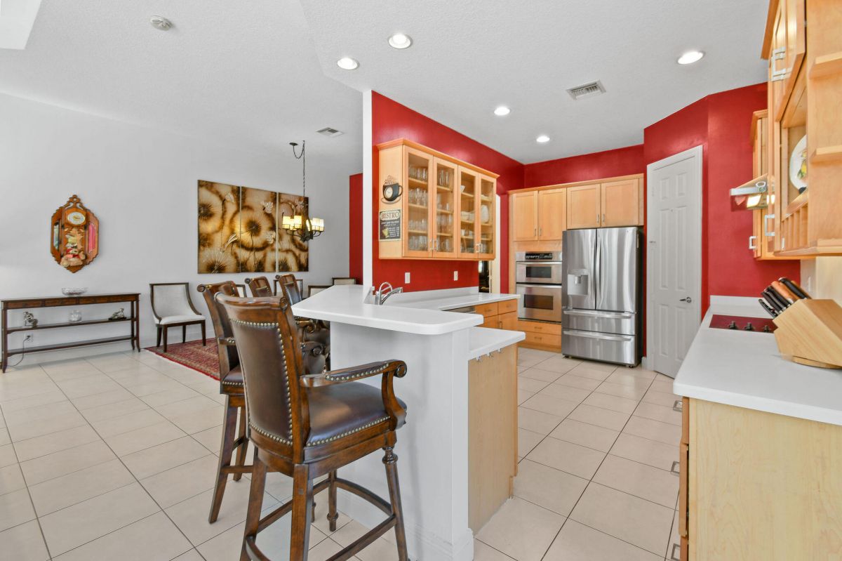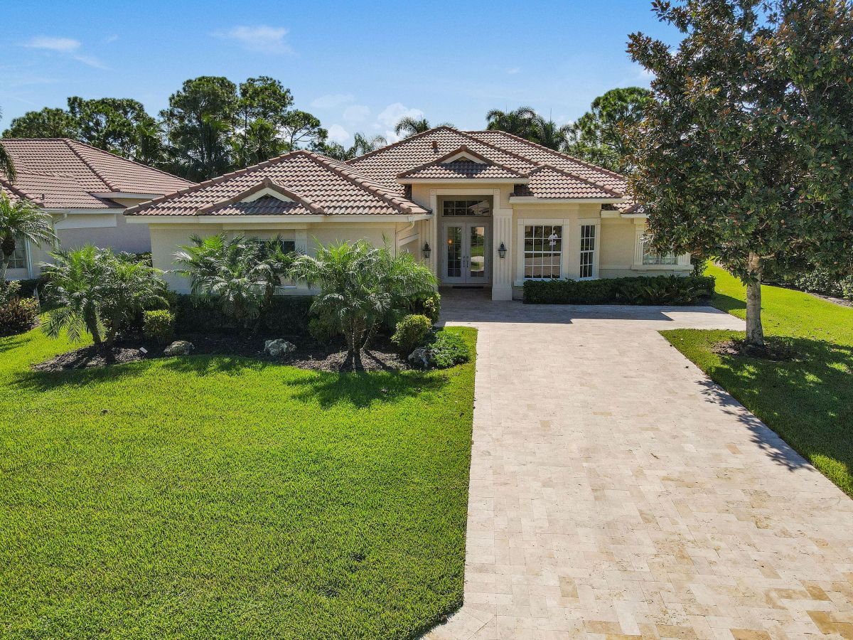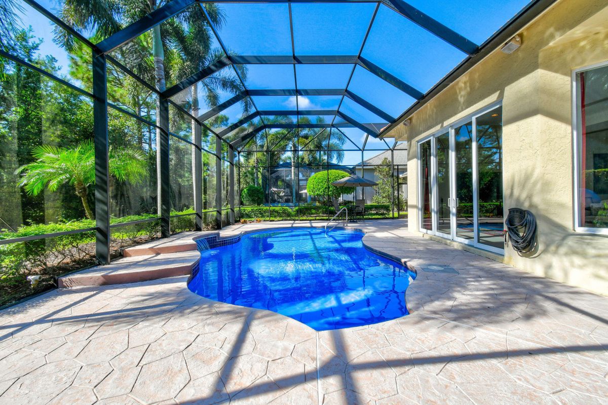 Nestled in the illustrious community of Cypress Point within PGA Village, this St. Andrews Model strikes a perfect balance between luxury and practicality with 3 bedrooms, a den, and 2.5 baths. The main living area is spacious and inviting, featuring 10-foot sliders offering a seamless integration between indoor and outdoor living that is ideal for those who love to entertain or simply enjoy the Florida climate. The stunning, newly resurfaced, azure blue pool--complete with a newer heater-- is the perfect setting for quiet mornings or fun afternoons with the family and offers year-round enjoyment. Enjoy peace of mind with full home impact glass. Living in the prestigious PGA Village is like having VIP access to a golfer's paradise 24/7.