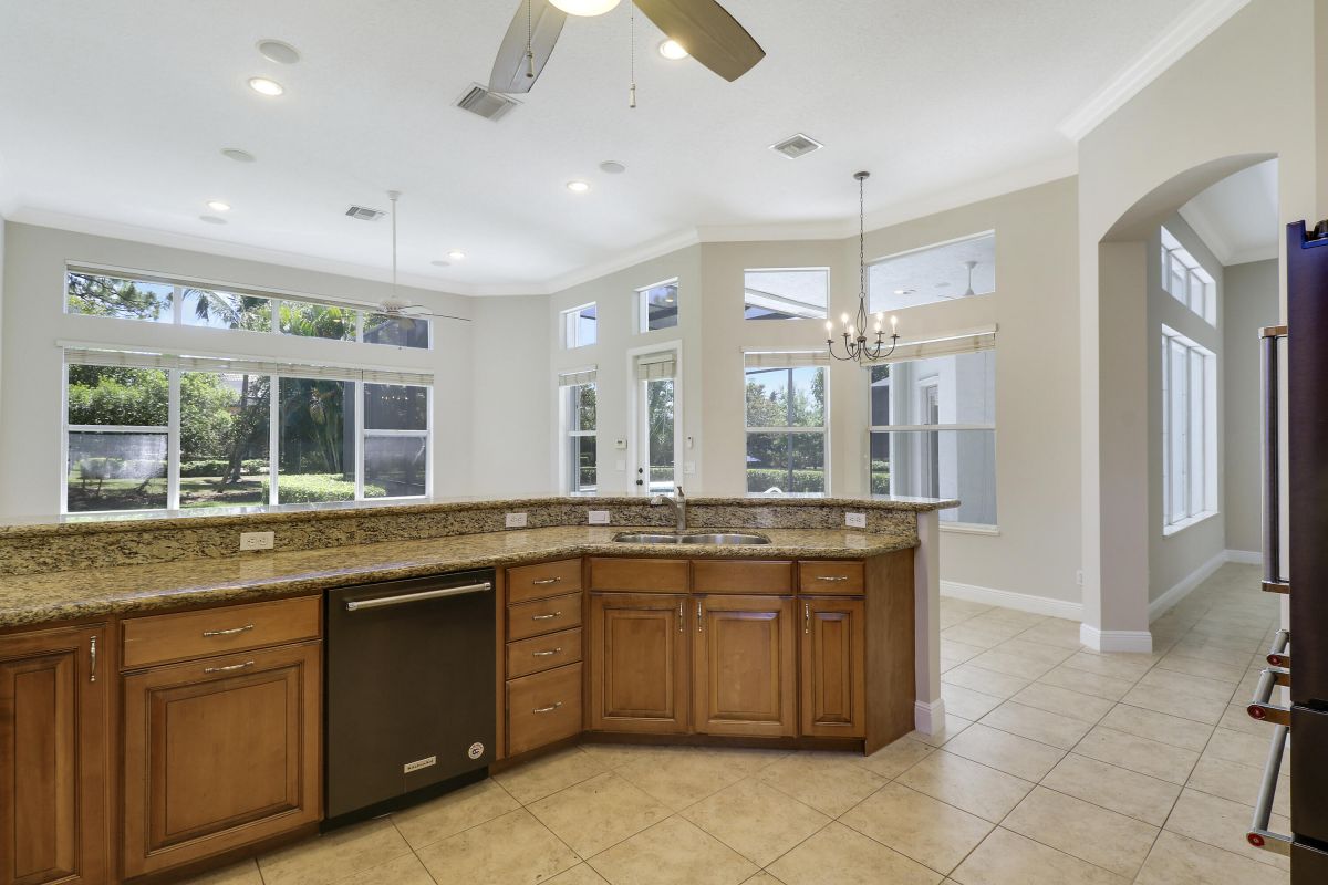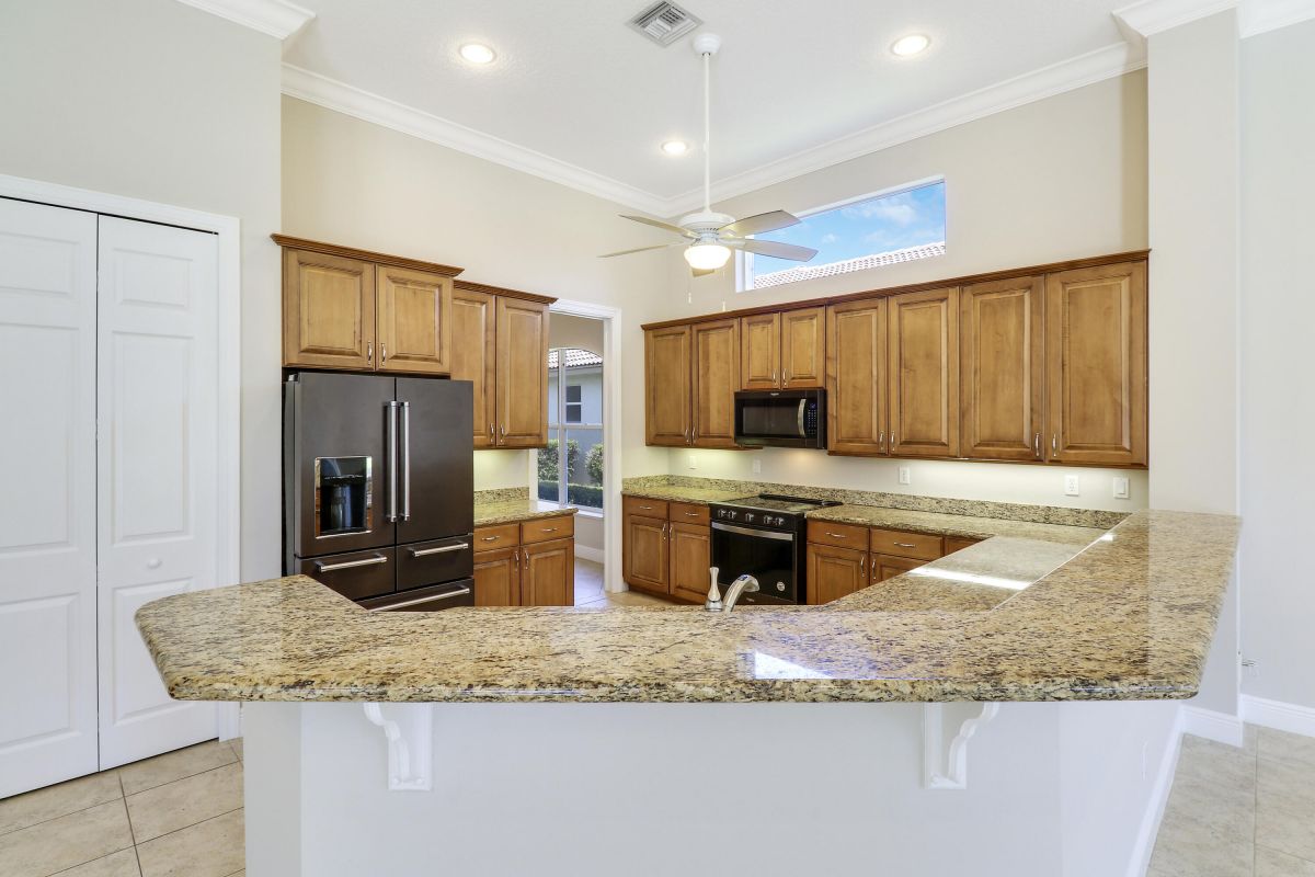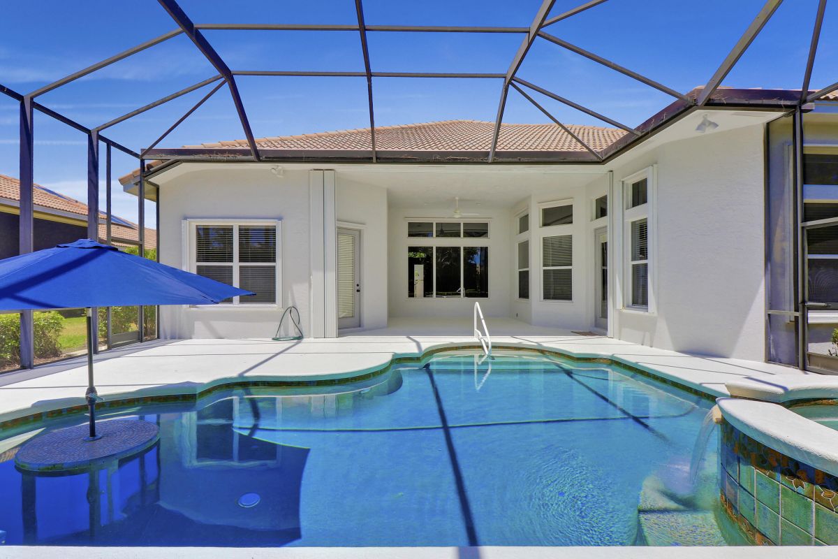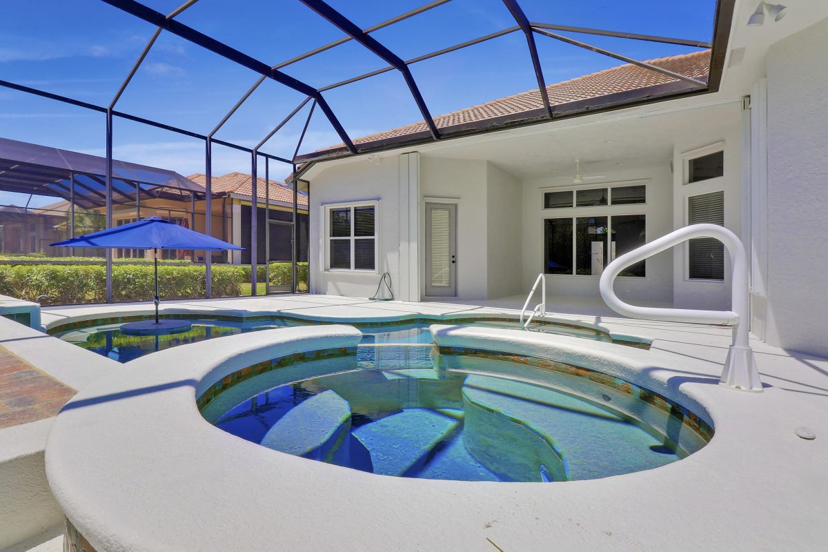 Spacious 4BR/3.5BA/2CG 'Arlington' floor plan with heated pool & spa located in the heart of PGA Village! This home offers privacy in the back yard, a spacious circular driveway, whole house generator, accordion hurricane shutters, guest bedrooms with ensuite bathrooms, hard surface flooring throughout, fresh interior & exterior paint and so much more. Large formal living room, dining room and kitchen opening to the family room make this home great for entertaining. Kitchen with an abundance of cabinetry, granite counters, SS appliances, breakfast nook and breakfast bar. Master suite has access out to pool, dual closets and ensuite with dual vanities, walk-in shower and soaking tub. Screened and partially covered lanai with gas heated pool & spa is the perfect spot to cool off and relax!