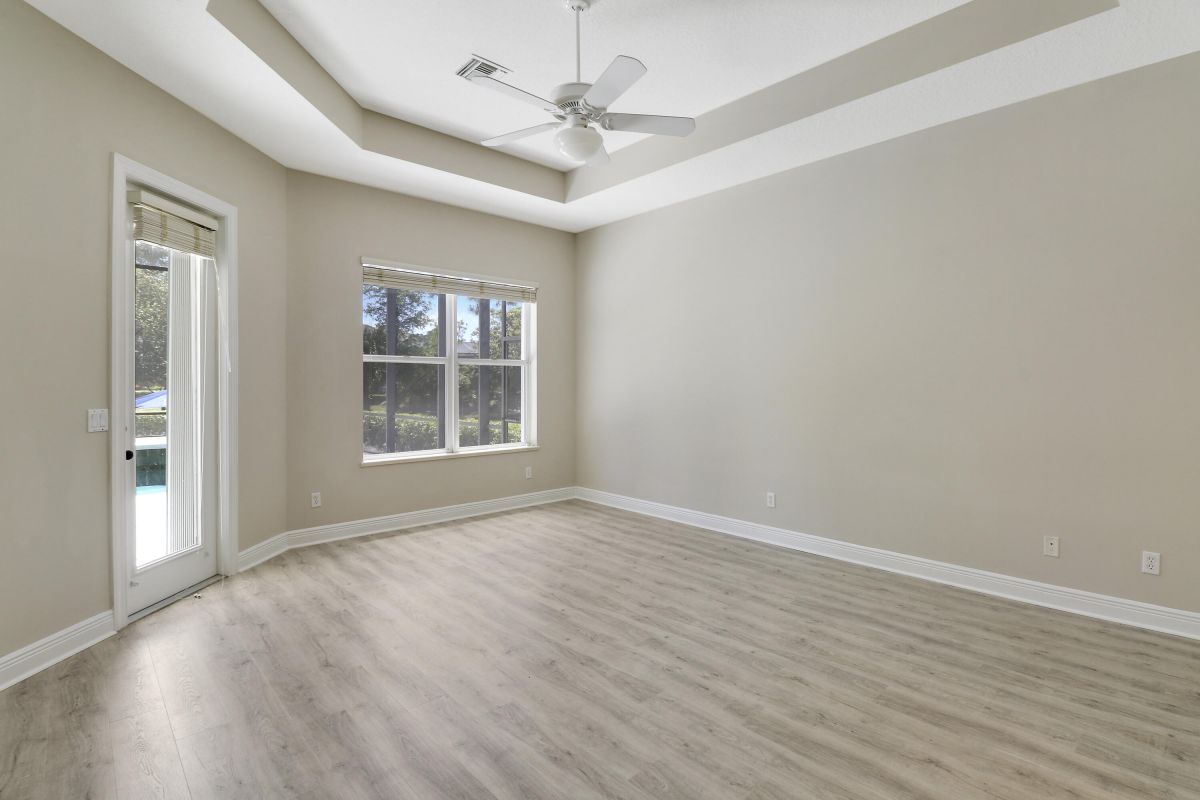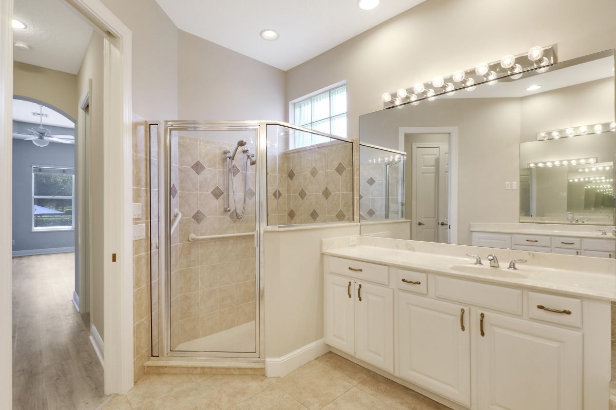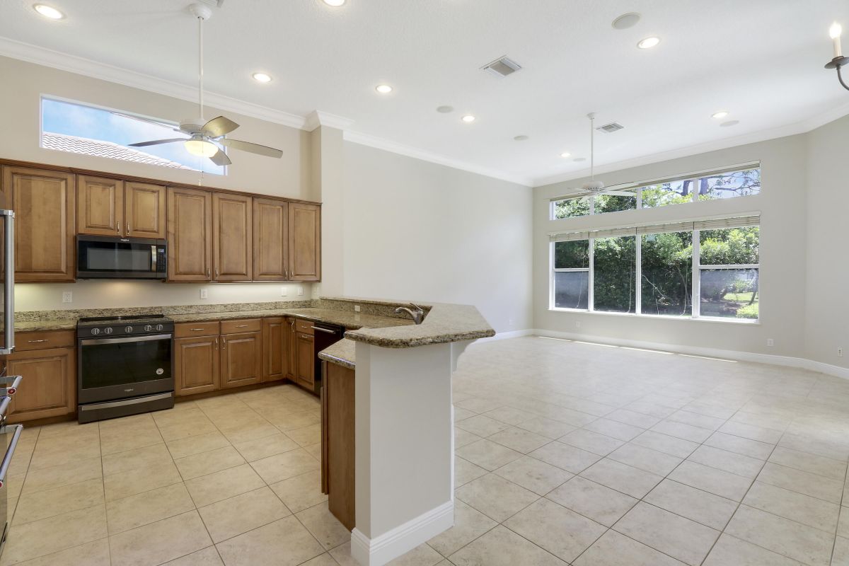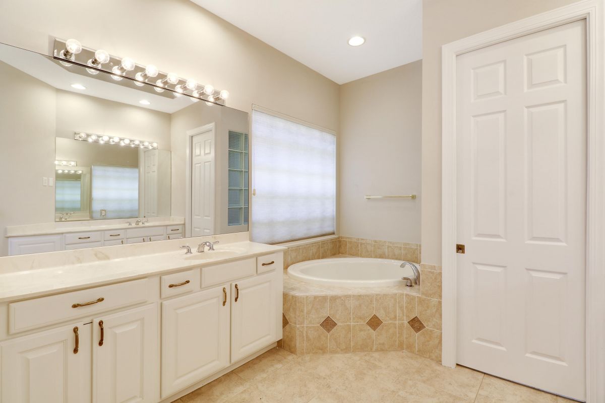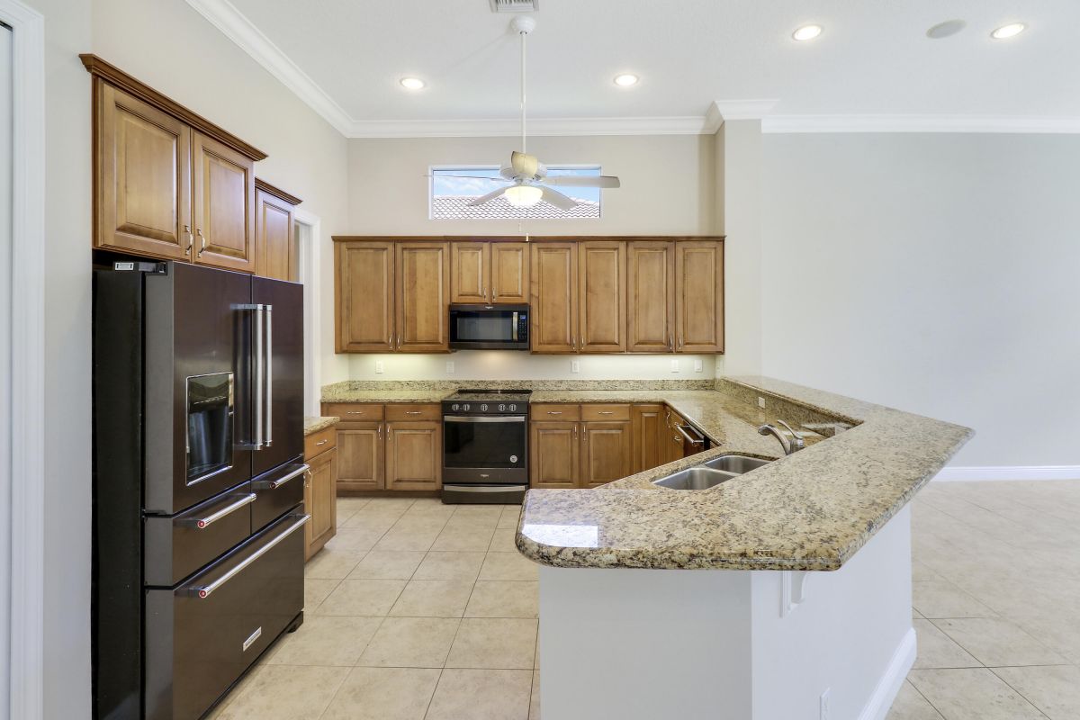 Spacious 4BR/3.5BA/2CG 'Arlington' floor plan with heated pool & spa located in the heart of PGA Village! This home offers privacy in the back yard, a spacious circular driveway, whole house generator, accordion hurricane shutters, guest bedrooms with ensuite bathrooms, hard surface flooring throughout, fresh interior & exterior paint and so much more. Large formal living room, dining room and kitchen opening to the family room make this home great for entertaining. Kitchen with an abundance of cabinetry, granite counters, SS appliances, breakfast nook and breakfast bar. Master suite has access out to pool, dual closets and ensuite with dual vanities, walk-in shower and soaking tub. Screened and partially covered lanai with gas heated pool & spa is the perfect spot to cool off and relax!