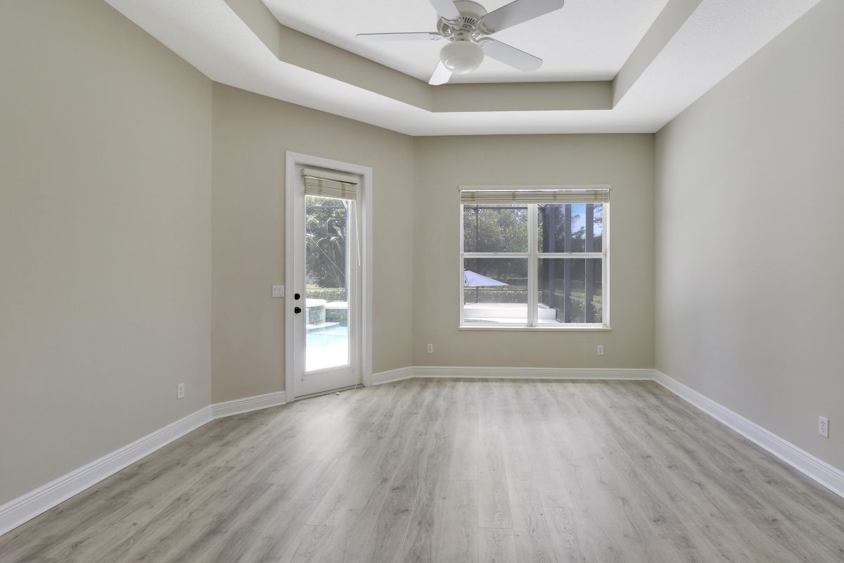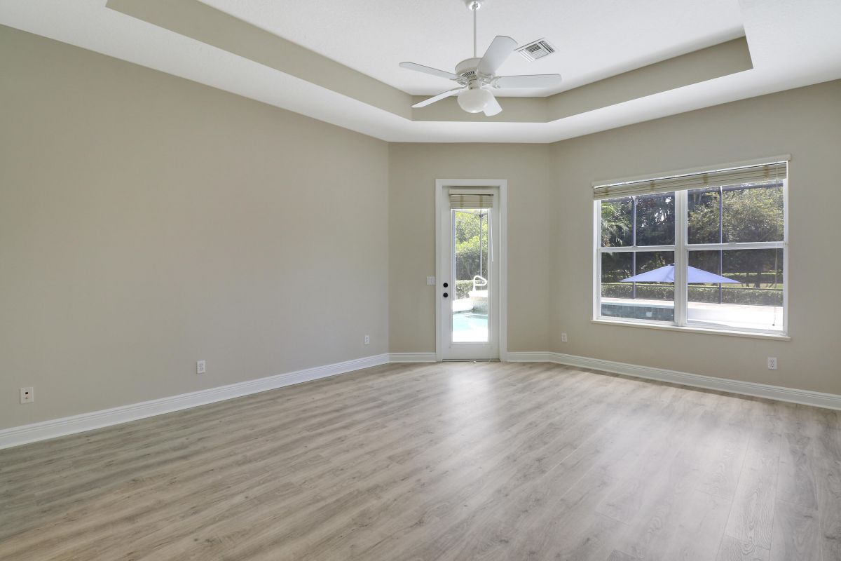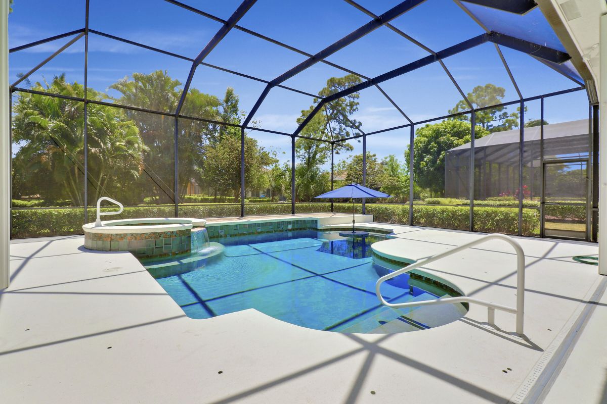Spacious 4BR/3.5BA/2CG 'Arlington' floor plan with heated pool & spa located in the heart of PGA Village! This home offers privacy in the back yard, a spacious circular driveway, whole house generator, accordion hurricane shutters, guest bedrooms with ensuite bathrooms, hard surface flooring throughout, fresh interior & exterior paint and so much more. Large formal living room, dining room and kitchen opening to the family room make this home great for entertaining. Kitchen with an abundance of cabinetry, granite counters, SS appliances, breakfast nook and breakfast bar. Master suite has access out to pool, dual closets and ensuite with dual vanities, walk-in shower and soaking tub. Screened and partially covered lanai with gas heated pool & spa is the perfect spot to cool off and relax!
