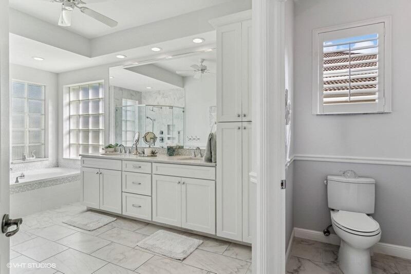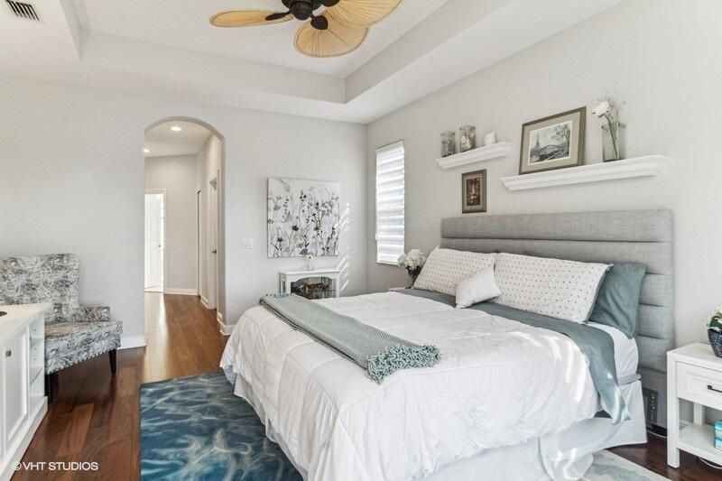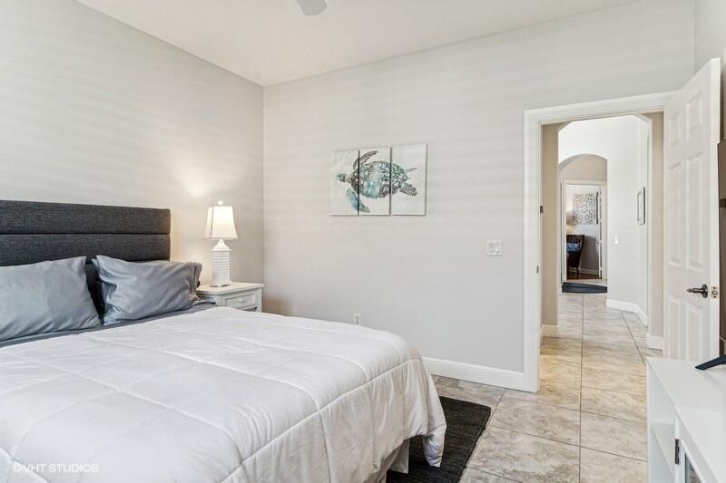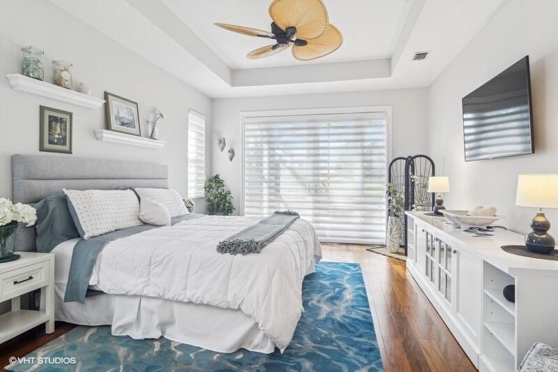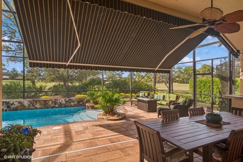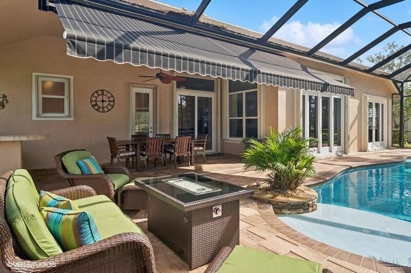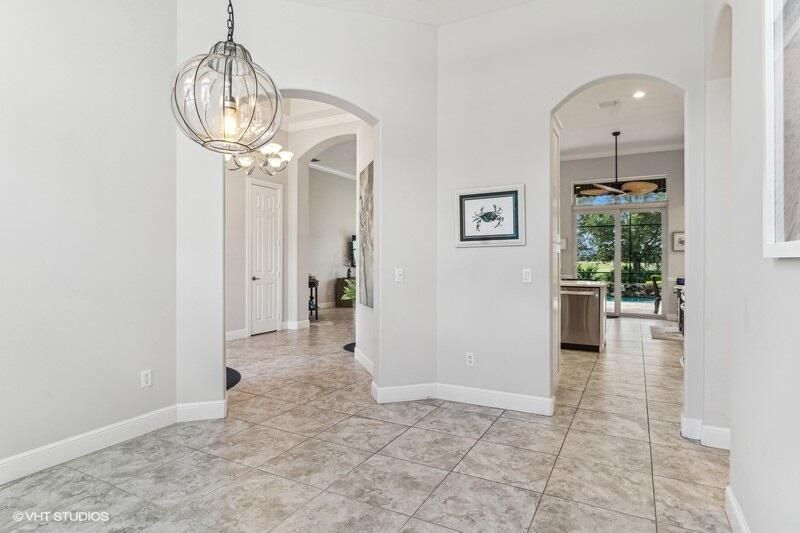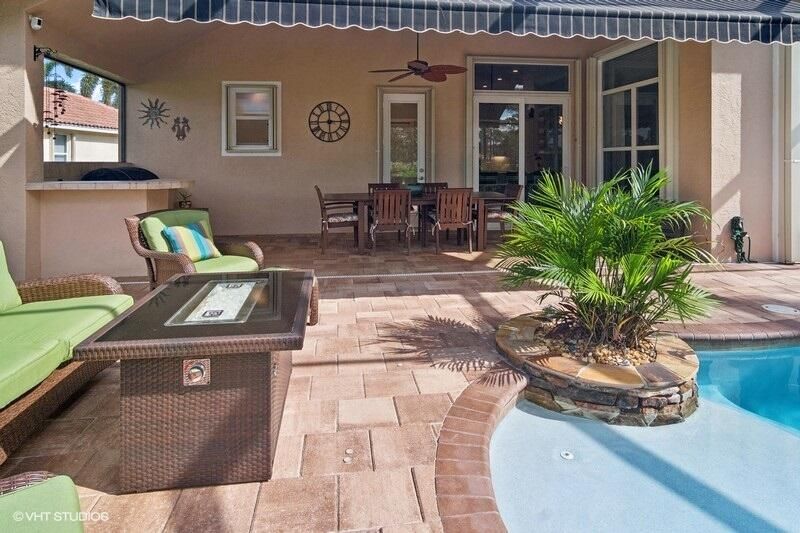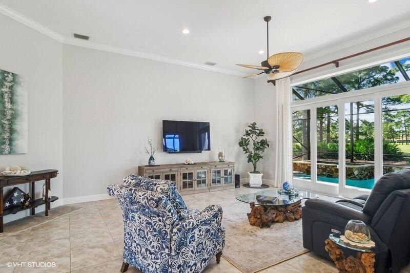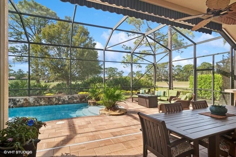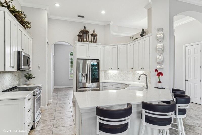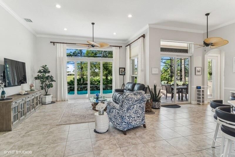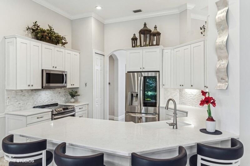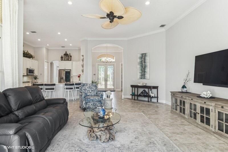 Built by Ecclestone, this beautifully designed 3-bedroom, 3-bathroom home features an open-concept great room with soaring volume ceilings that flood the space with natural light. The modern, updated kitchen boasts white shaker cabinets with under-cabinet lighting, quartz countertops, and a large farm sink--perfect for both everyday living and entertaining.The luxurious master suite is a true retreat, offering two spacious walk-in closets and a spa-like bath with a carwash shower, separate soaking tub, and double sinks, creating an ideal space for relaxation and rejuvenation. Other features include LED lighting, impact-resistant sliders, electric awning over the lanai, plantation shutters, a desirable 3car garage with new epoxy floors