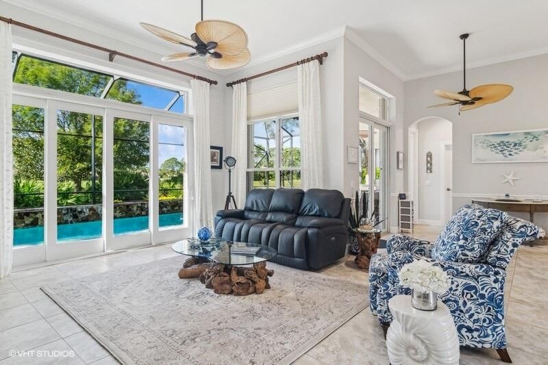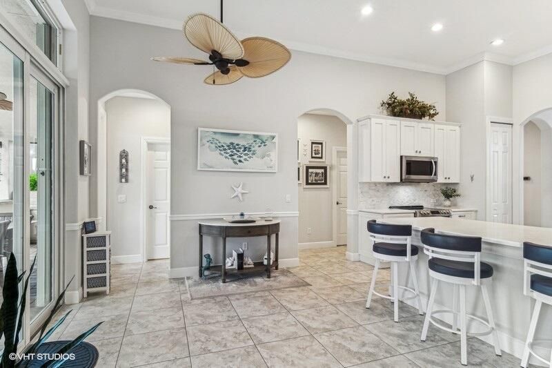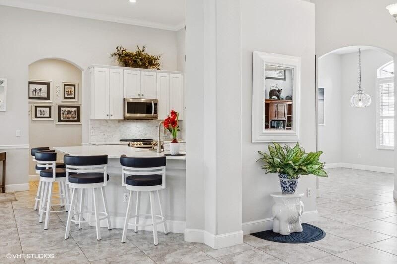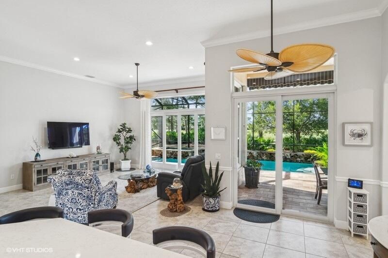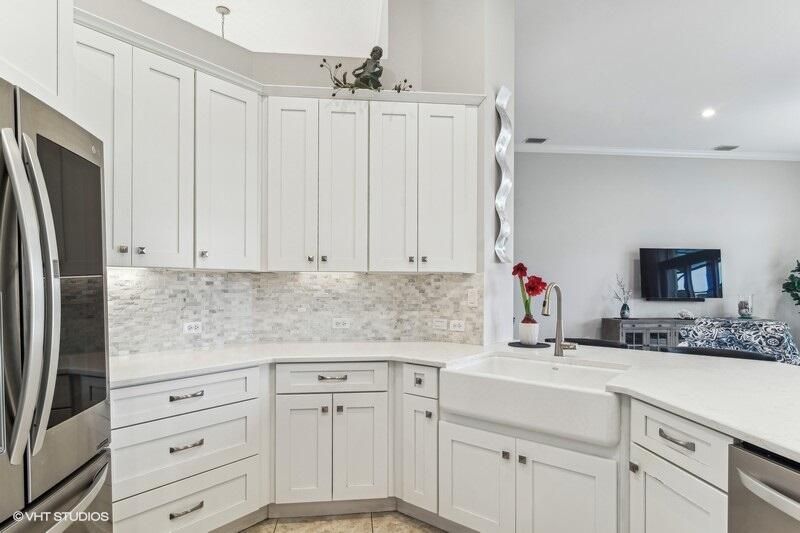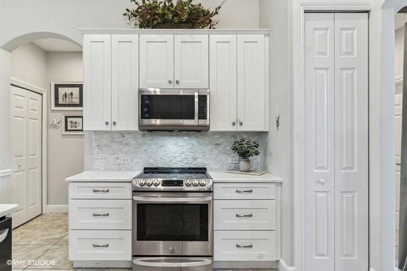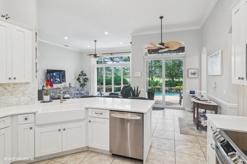 Built by Ecclestone, this beautifully designed 3-bedroom, 3-bathroom home features an open-concept great room with soaring volume ceilings that flood the space with natural light. The modern, updated kitchen boasts white shaker cabinets with under-cabinet lighting, quartz countertops, and a large farm sink--perfect for both everyday living and entertaining.The luxurious master suite is a true retreat, offering two spacious walk-in closets and a spa-like bath with a carwash shower, separate soaking tub, and double sinks, creating an ideal space for relaxation and rejuvenation. Other features include LED lighting, impact-resistant sliders, electric awning over the lanai, plantation shutters, a desirable 3car garage with new epoxy floors