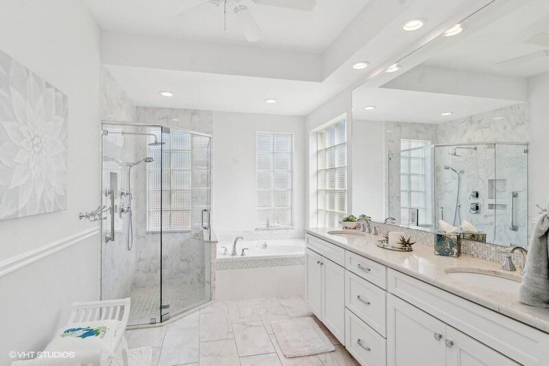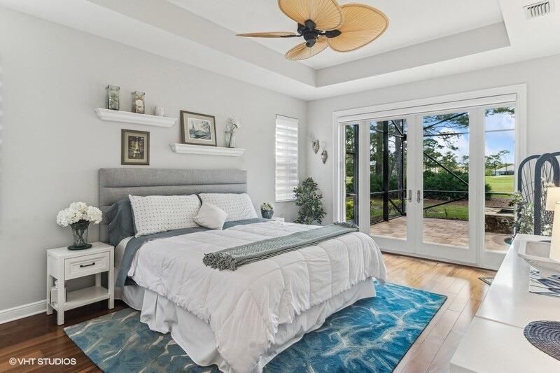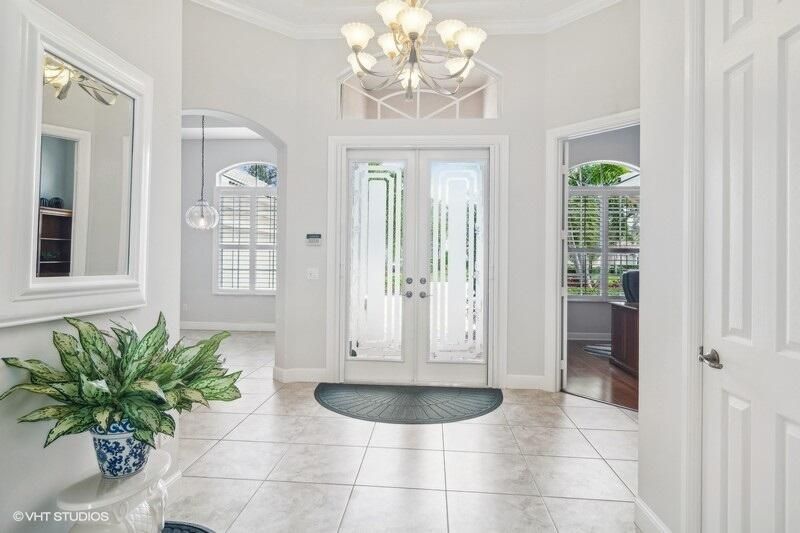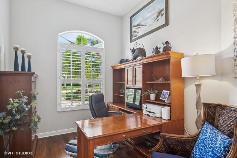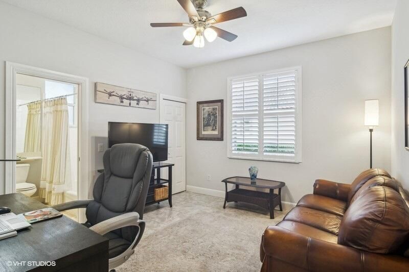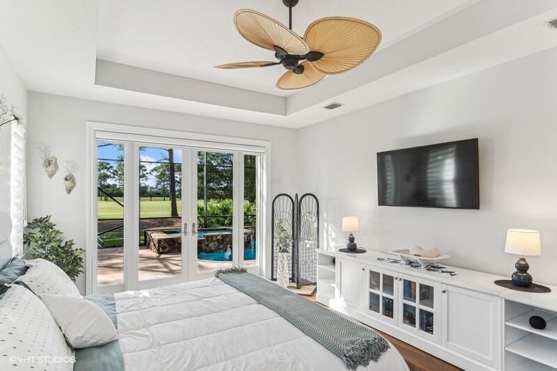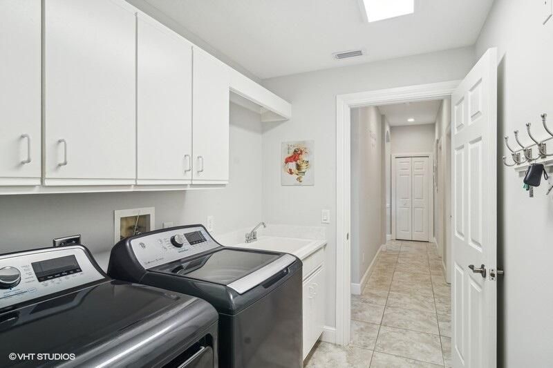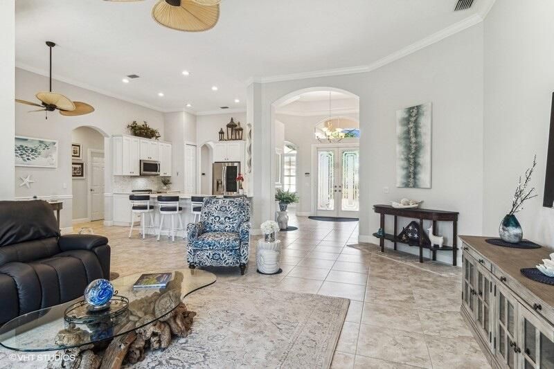 Built by Ecclestone, this beautifully designed 3-bedroom, 3-bathroom home features an open-concept great room with soaring volume ceilings that flood the space with natural light. The modern, updated kitchen boasts white shaker cabinets with under-cabinet lighting, quartz countertops, and a large farm sink--perfect for both everyday living and entertaining.The luxurious master suite is a true retreat, offering two spacious walk-in closets and a spa-like bath with a carwash shower, separate soaking tub, and double sinks, creating an ideal space for relaxation and rejuvenation. Other features include LED lighting, impact-resistant sliders, electric awning over the lanai, plantation shutters, a desirable 3car garage with new epoxy floors